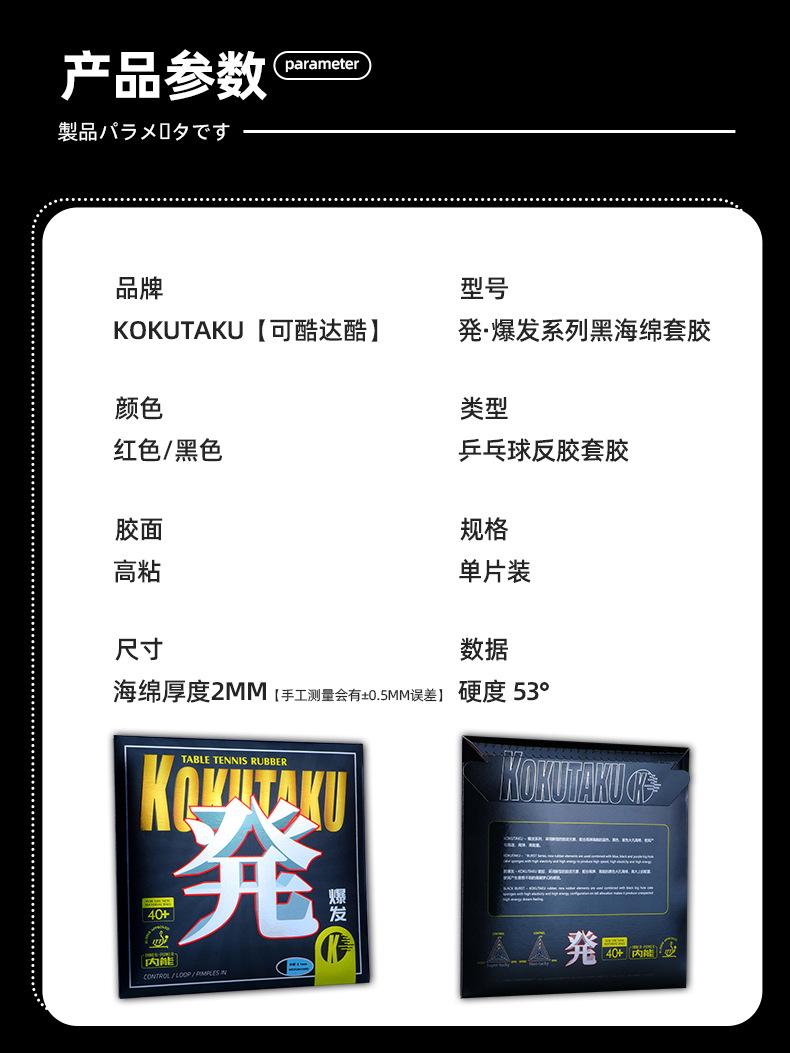 Kokutaku black outbreak nueva goma para raqueta de tenis de mesa de doble cara anti-goma anillo goma para tenis de mesa de ataque rápido al por mayor