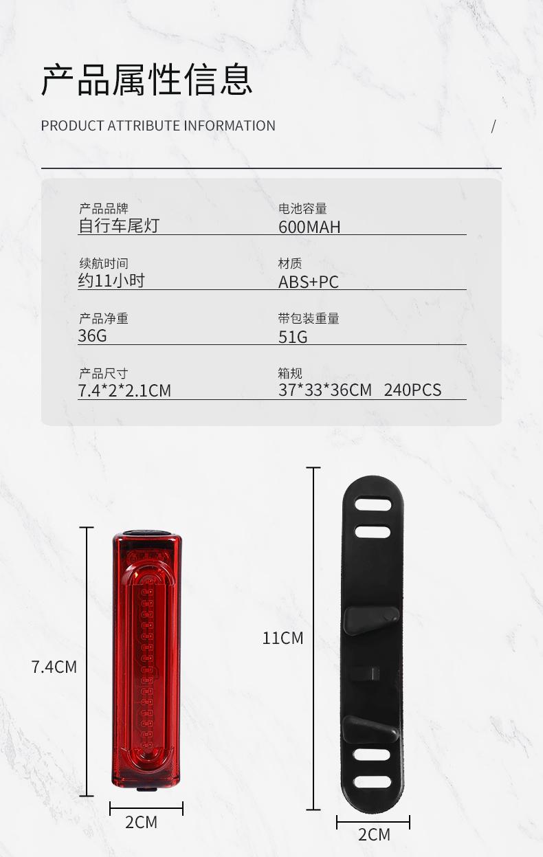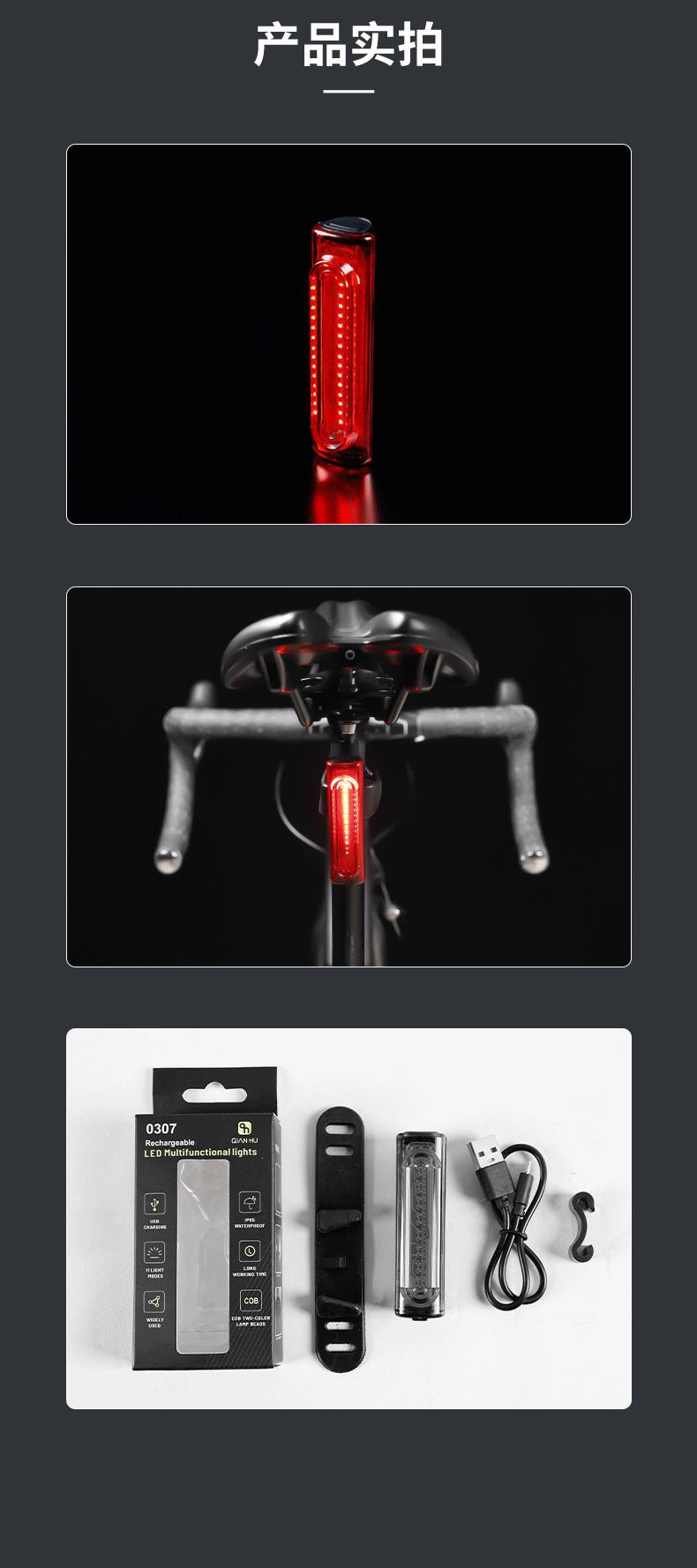 Luz trasera de bicicleta, luz LED brillante USB, luz de advertencia para bicicleta de montaña, de larga duración, accesorios para conducción nocturna al aire libre