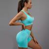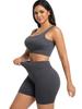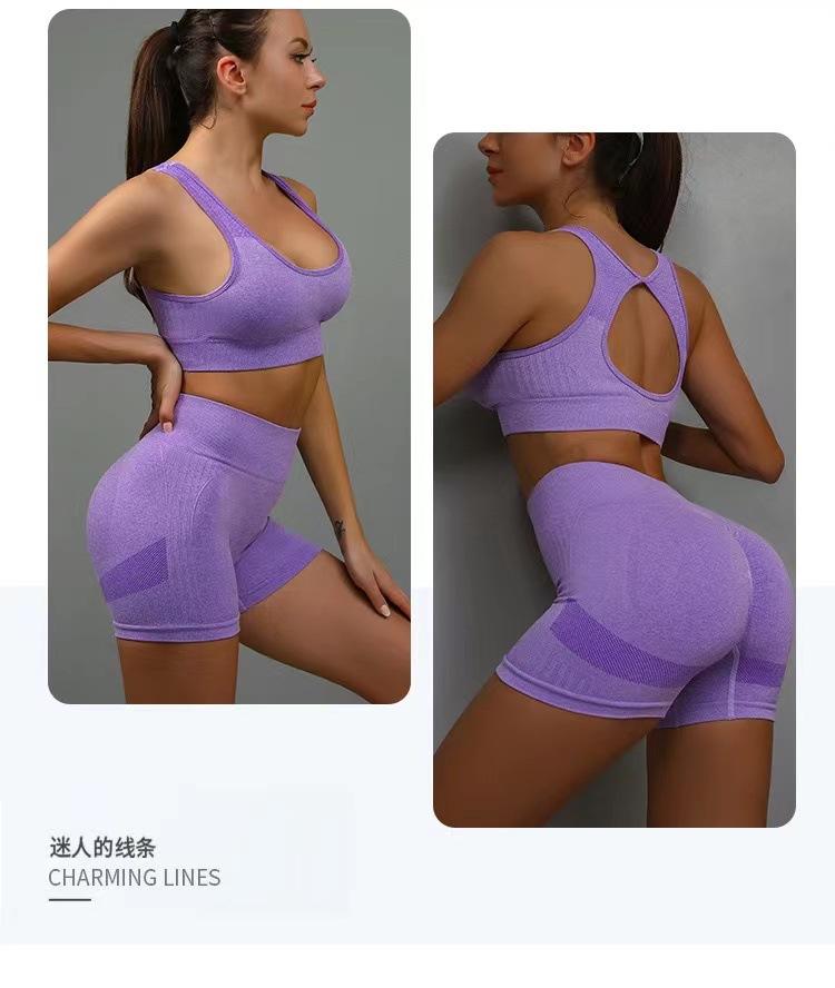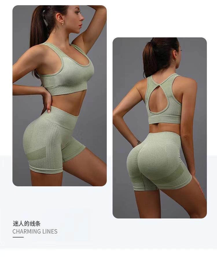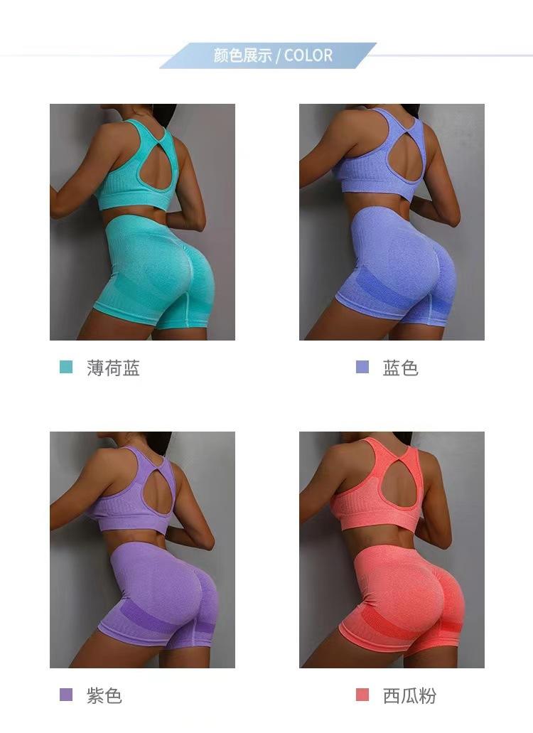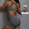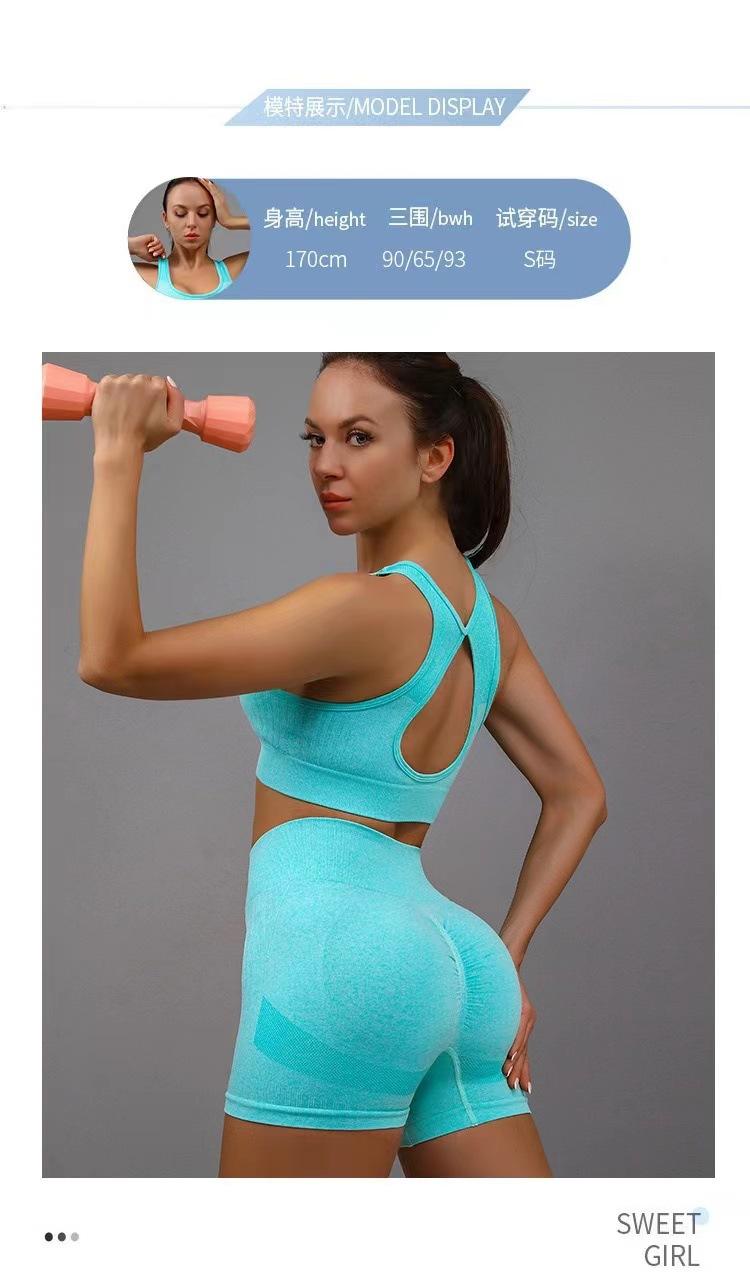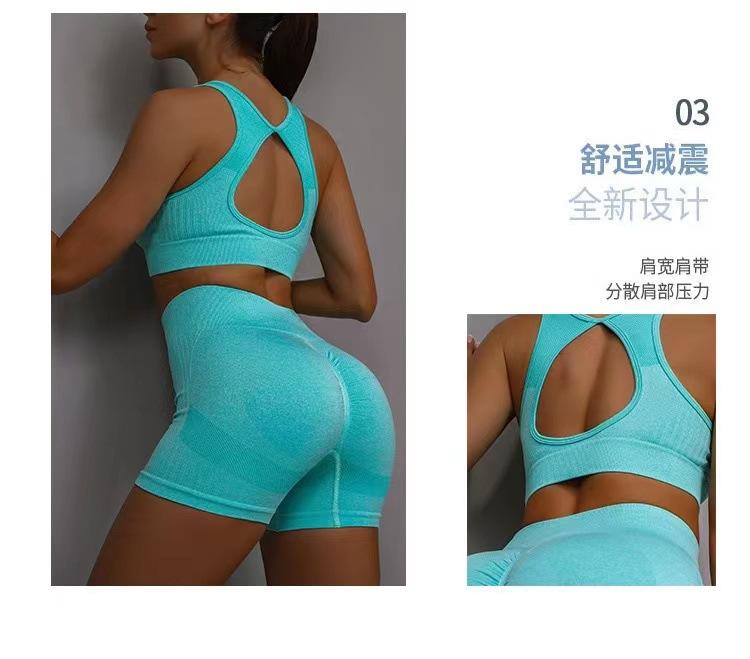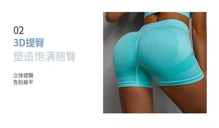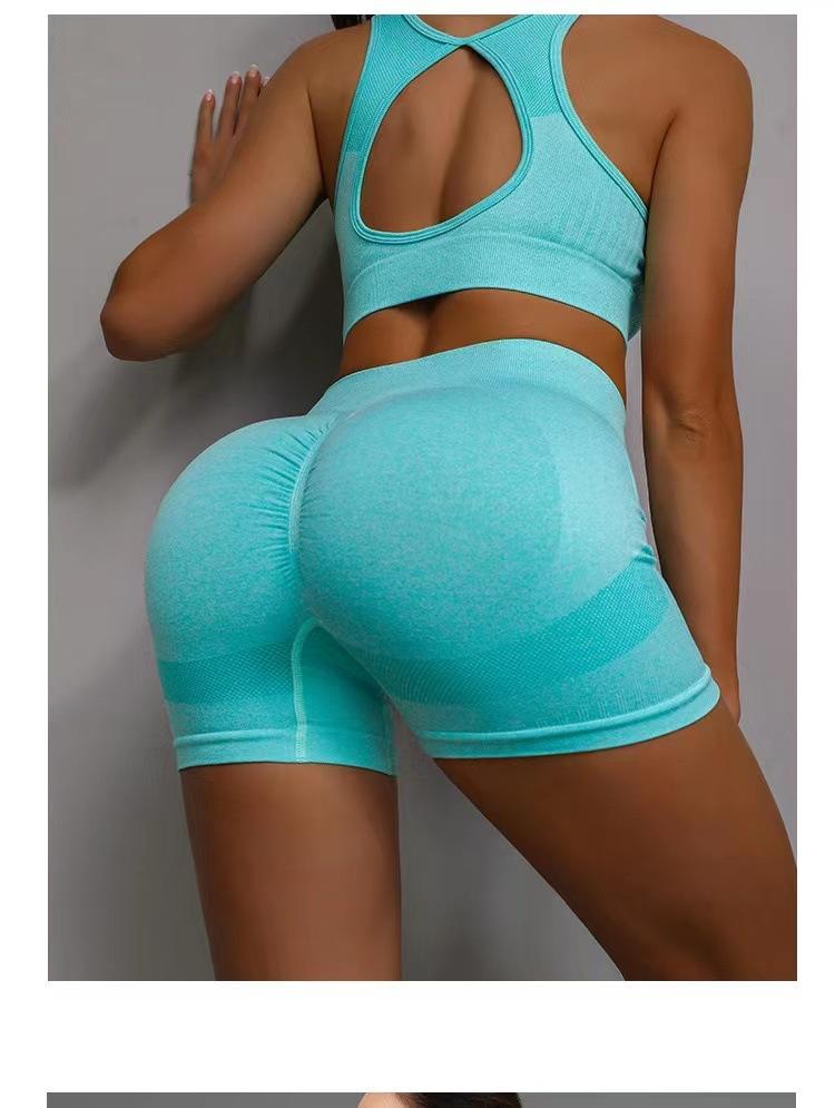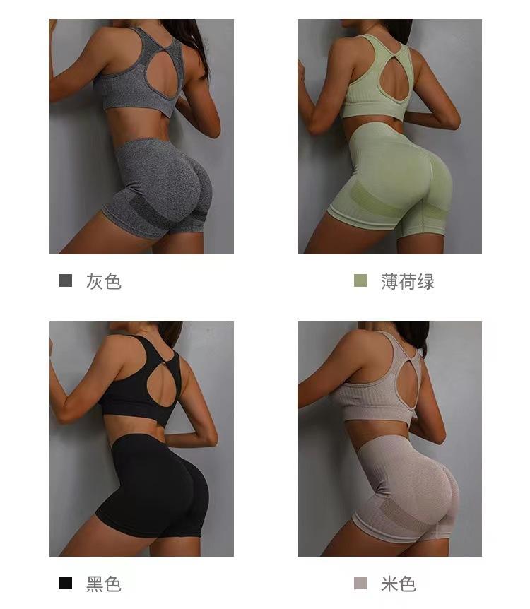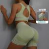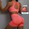 Conjunto deportivo de yoga y fitness transfronterizo europeo y americano con pantalones cortos elásticos transpirables y caderas Smiley Peach, sujetador trasero bonito para mujer