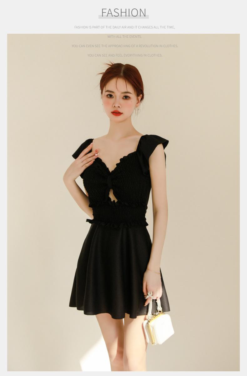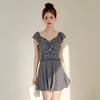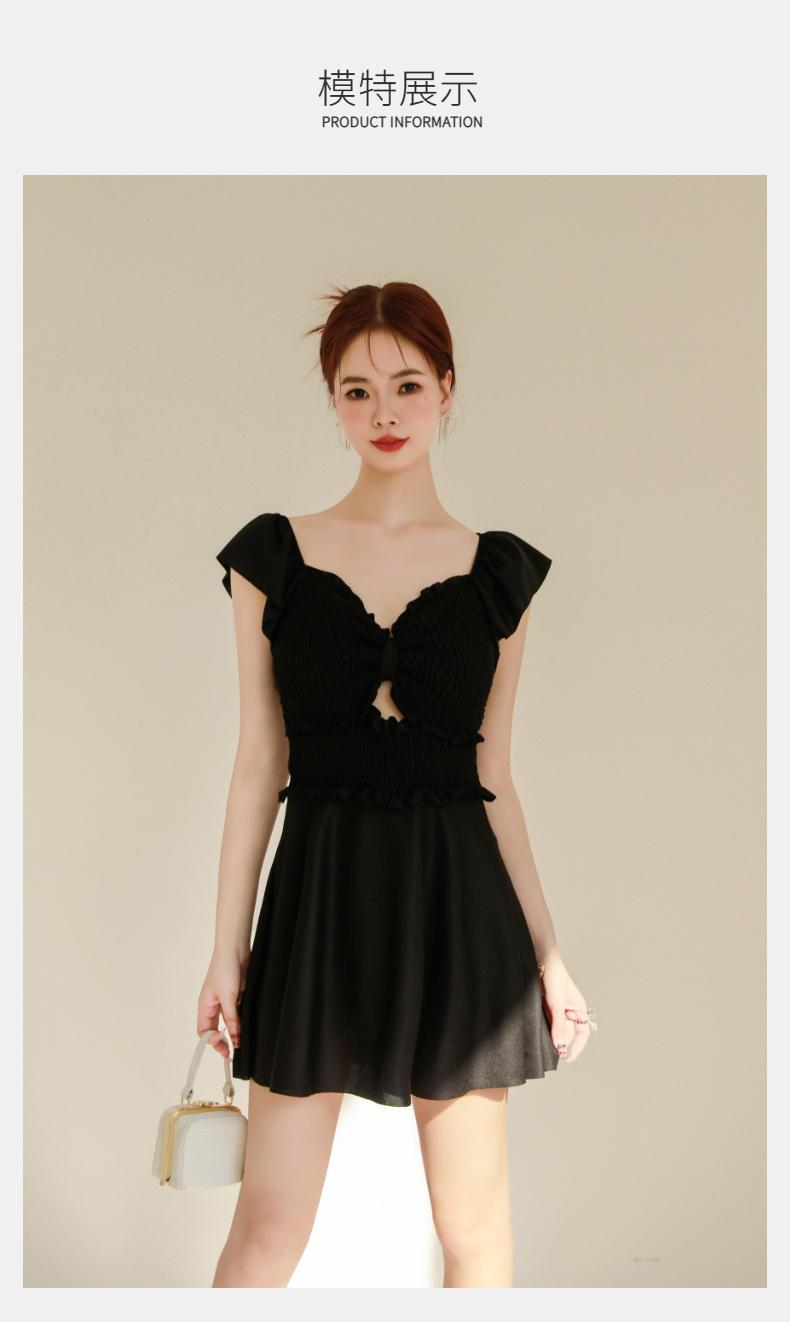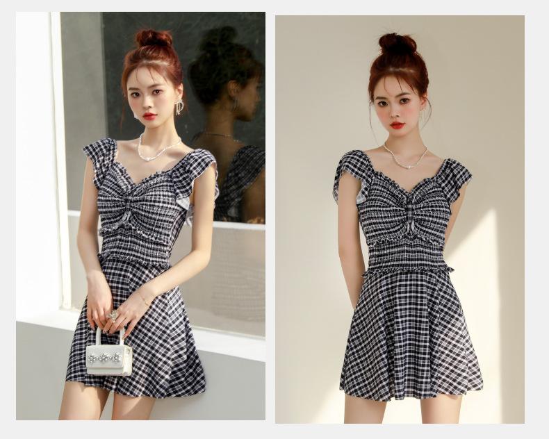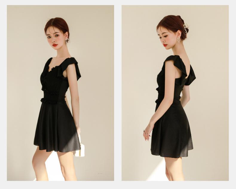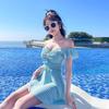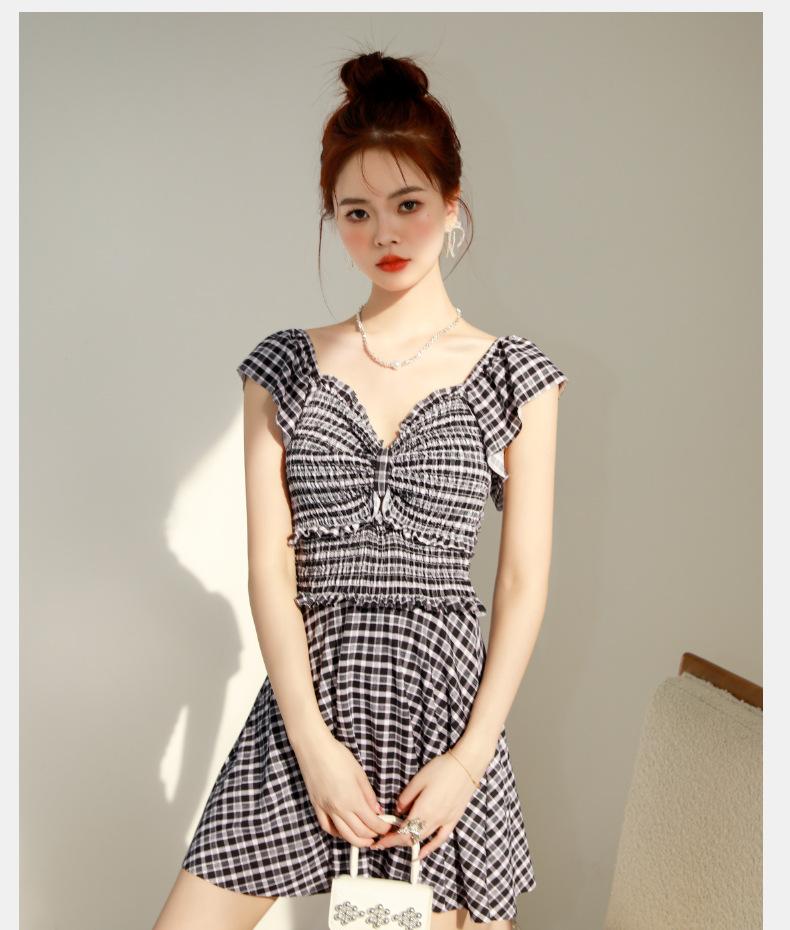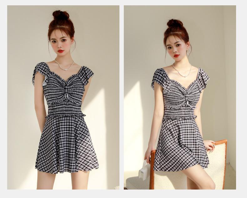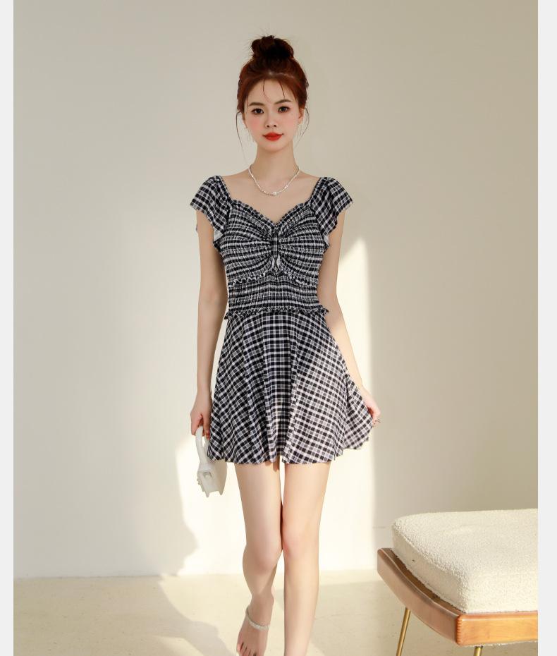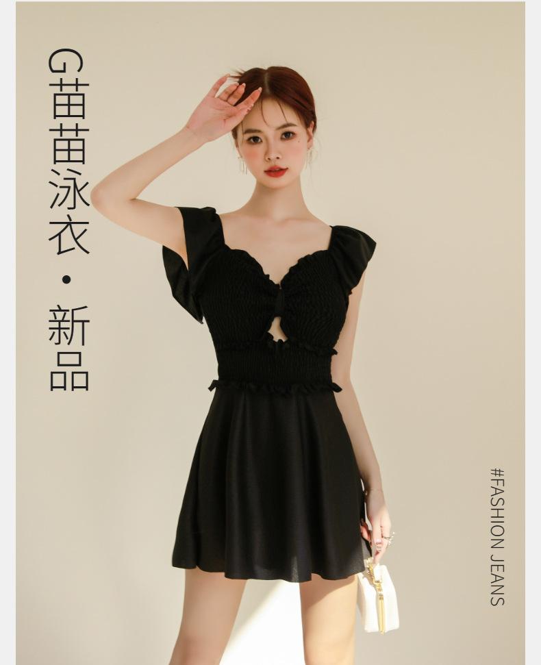 Traje de baño de una pieza para mujer, novedad de 2025, con falda de aguas termales de alta gama, estilo viento puro, sexy, con barriga cubierta, ajustado y conservador.
