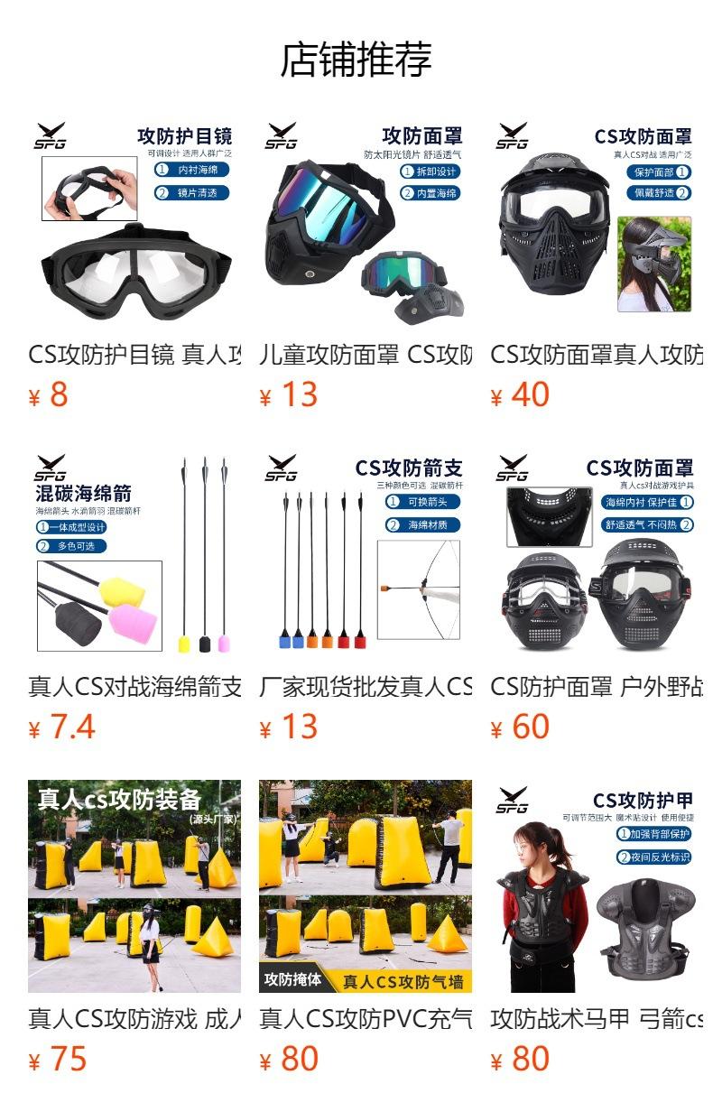 Gafas de ataque y defensa CS Proyecto de juego de flechas de ataque y defensa en vivo Grupo de entretenimiento de batalla al aire libre Construcción de equipos de protección en stock
