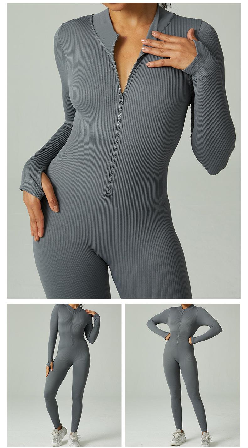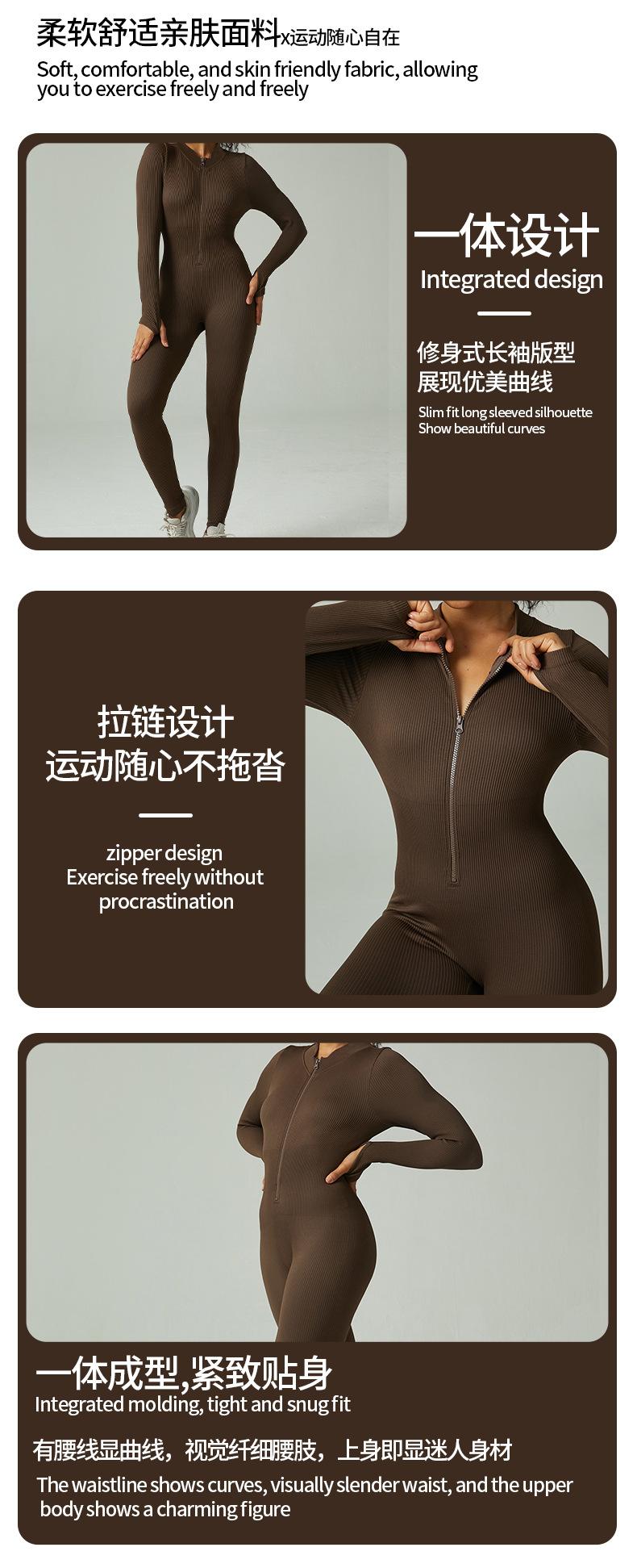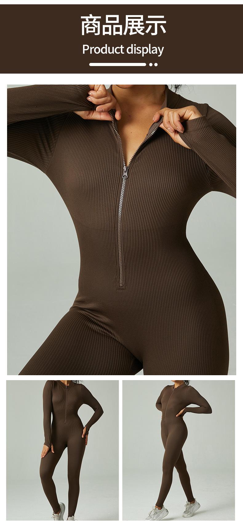 Mono de Yoga sin Costuras Transfronterizo Deportivo Fitness Cremallera de Alta Resistencia Manga Larga Hilo Ajustado Traje de Yoga para Mujer