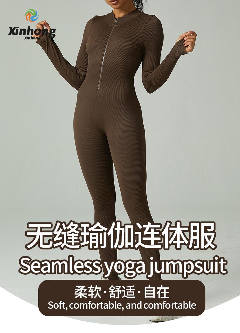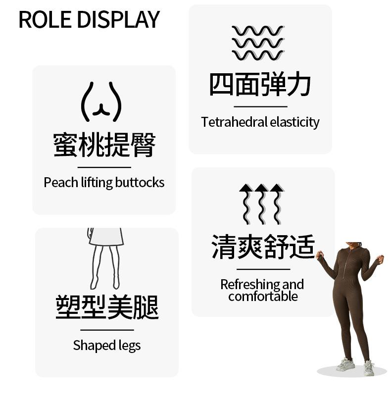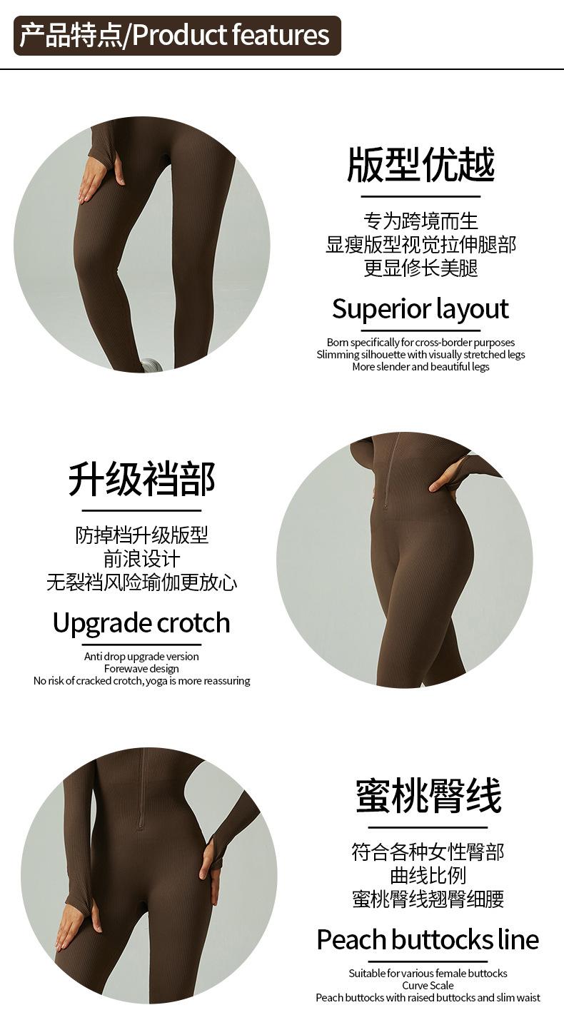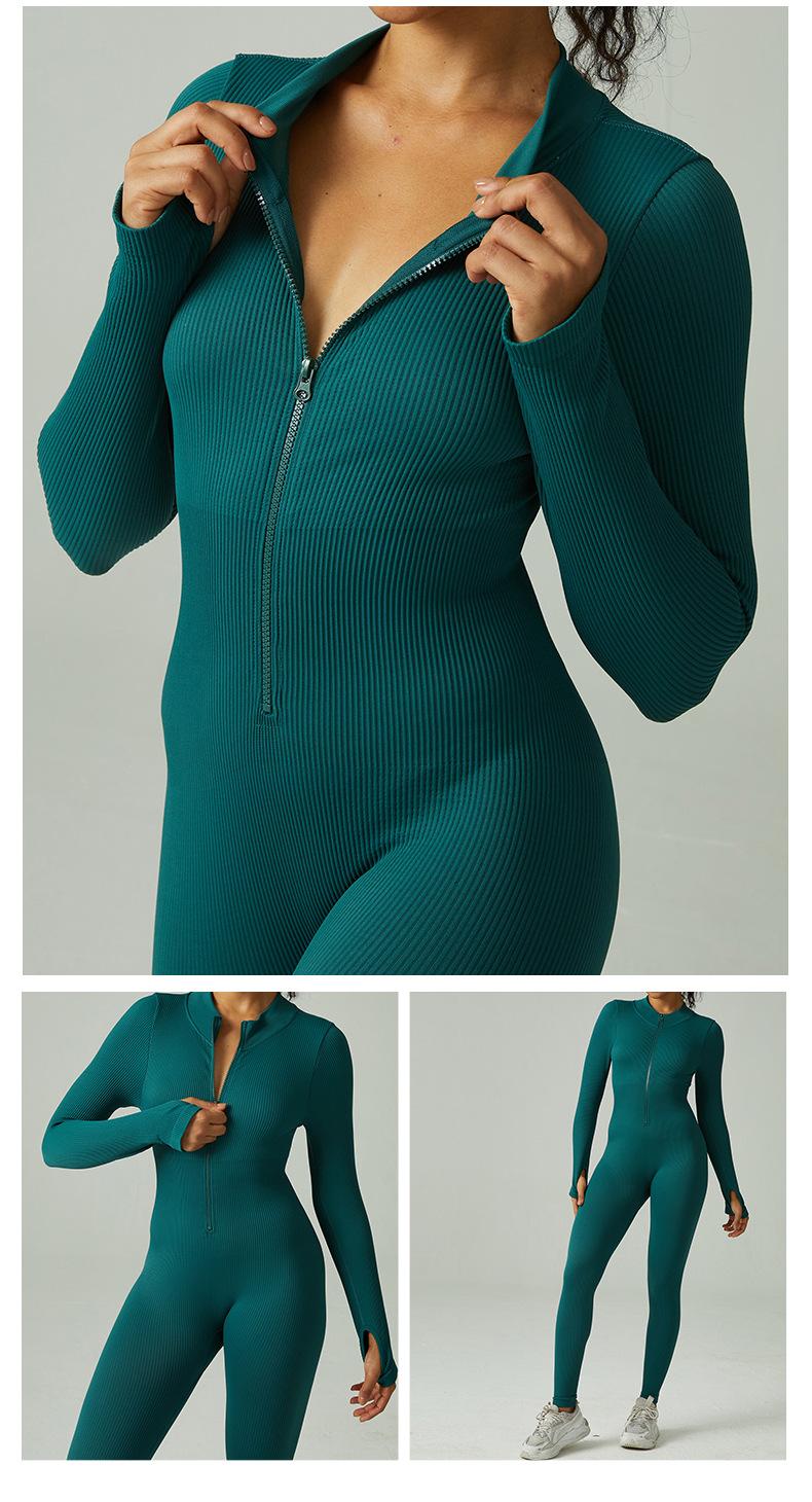 Mono de Yoga sin Costuras Transfronterizo Deportivo Fitness Cremallera de Alta Resistencia Manga Larga Hilo Ajustado Traje de Yoga para Mujer