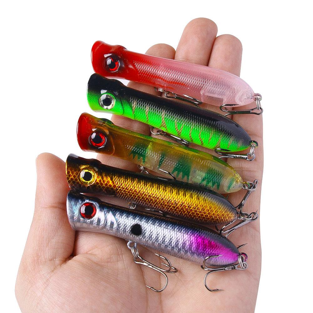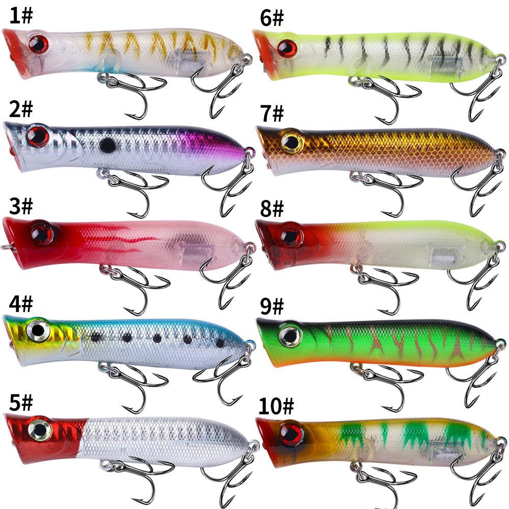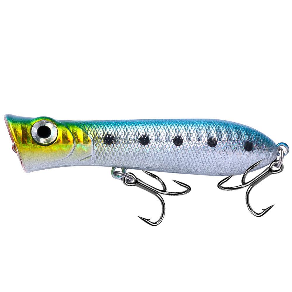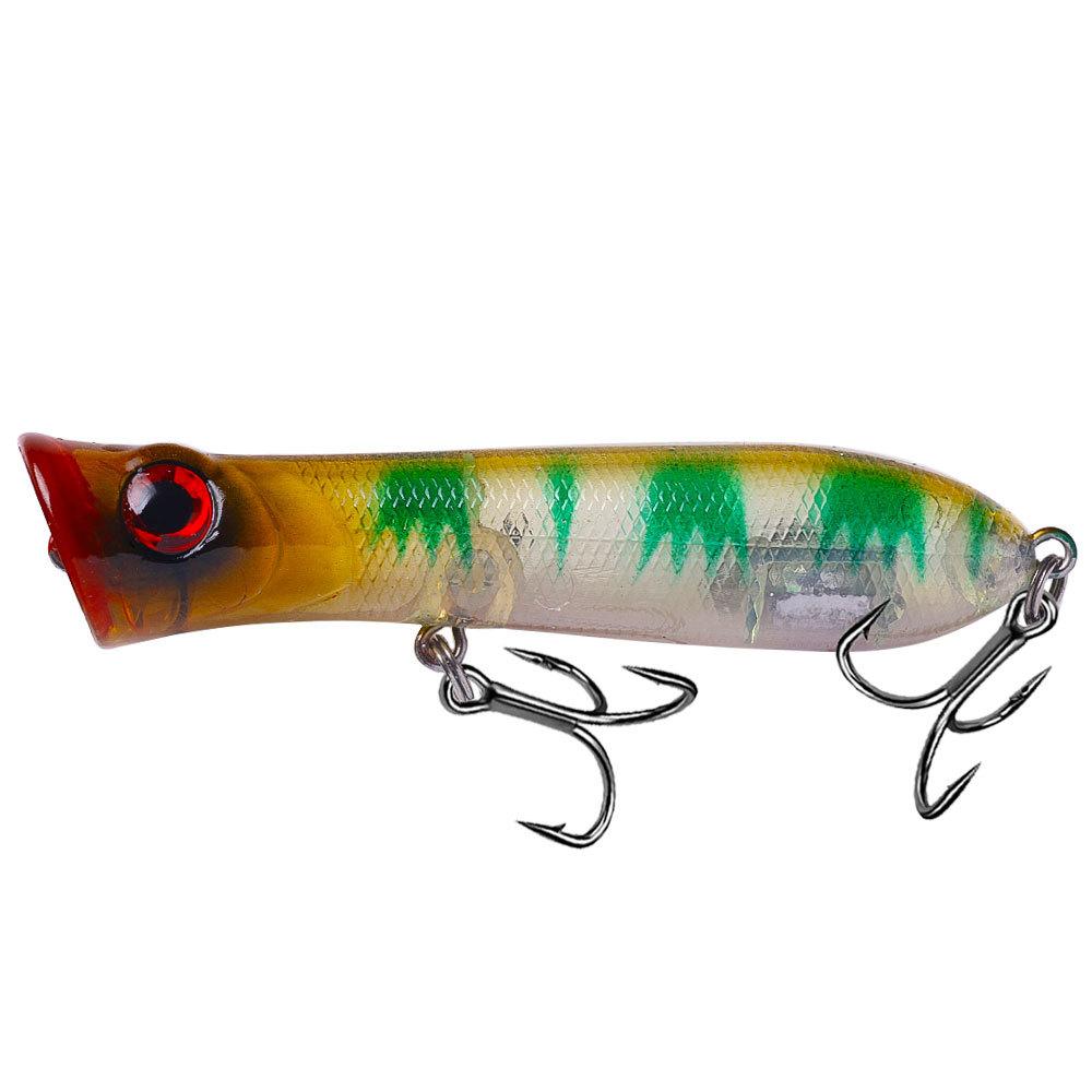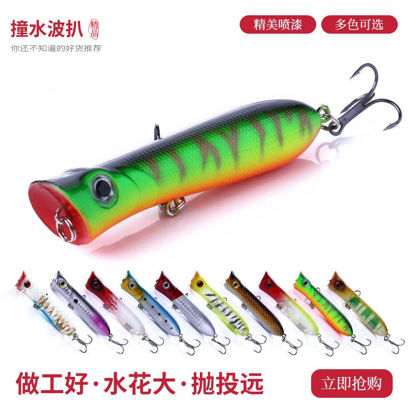El señuelo pop-up es un señuelo de superficie. Usualmente tiene una boca grande para hacer contacto en un área grande con el agua. El tamaño del chapoteo también está relacionado con si se pesca el pez o no. ¡También hay productos con branquias abiertas y combinados con pencil (señuelos en forma de lápiz) en el mercado!
