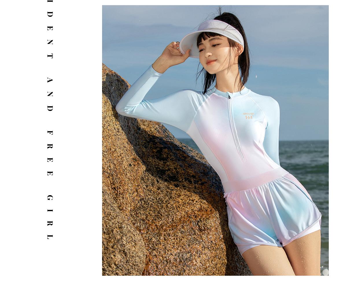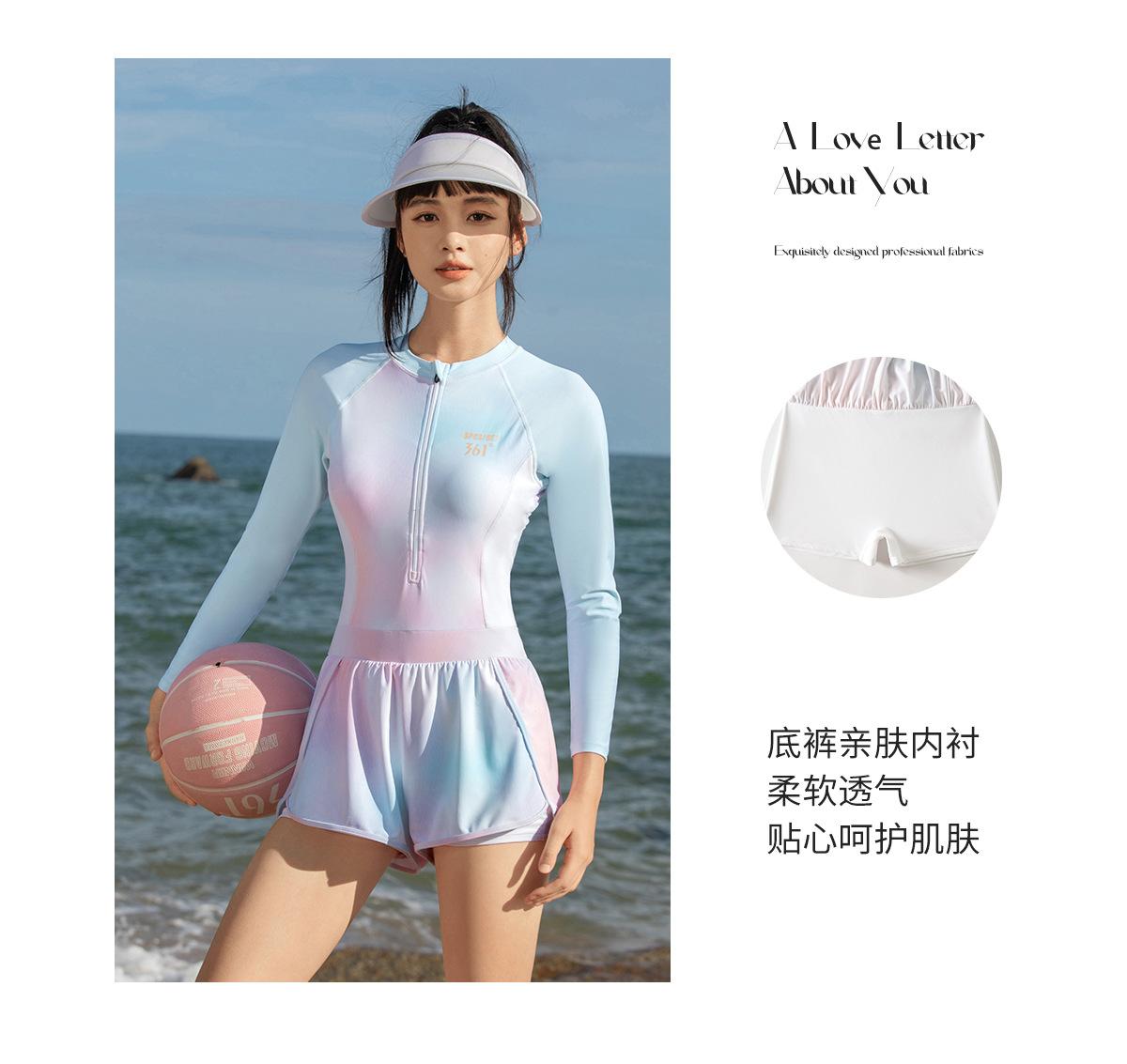 Traje de baño 361 para mujer 2025 Nuevo de alta gama Conservador Look adelgazante Cubriendo la carne Aguas termales Manga larga Protección solar Traje de baño de una pieza