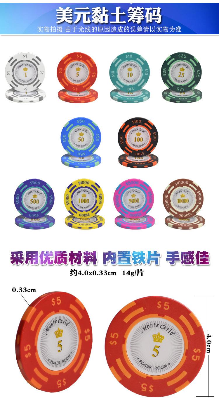 Fichas de dólar estadounidense fichas de Texas Hold'em con lámina de hierro incorporada (personalizables para grandes cantidades)
