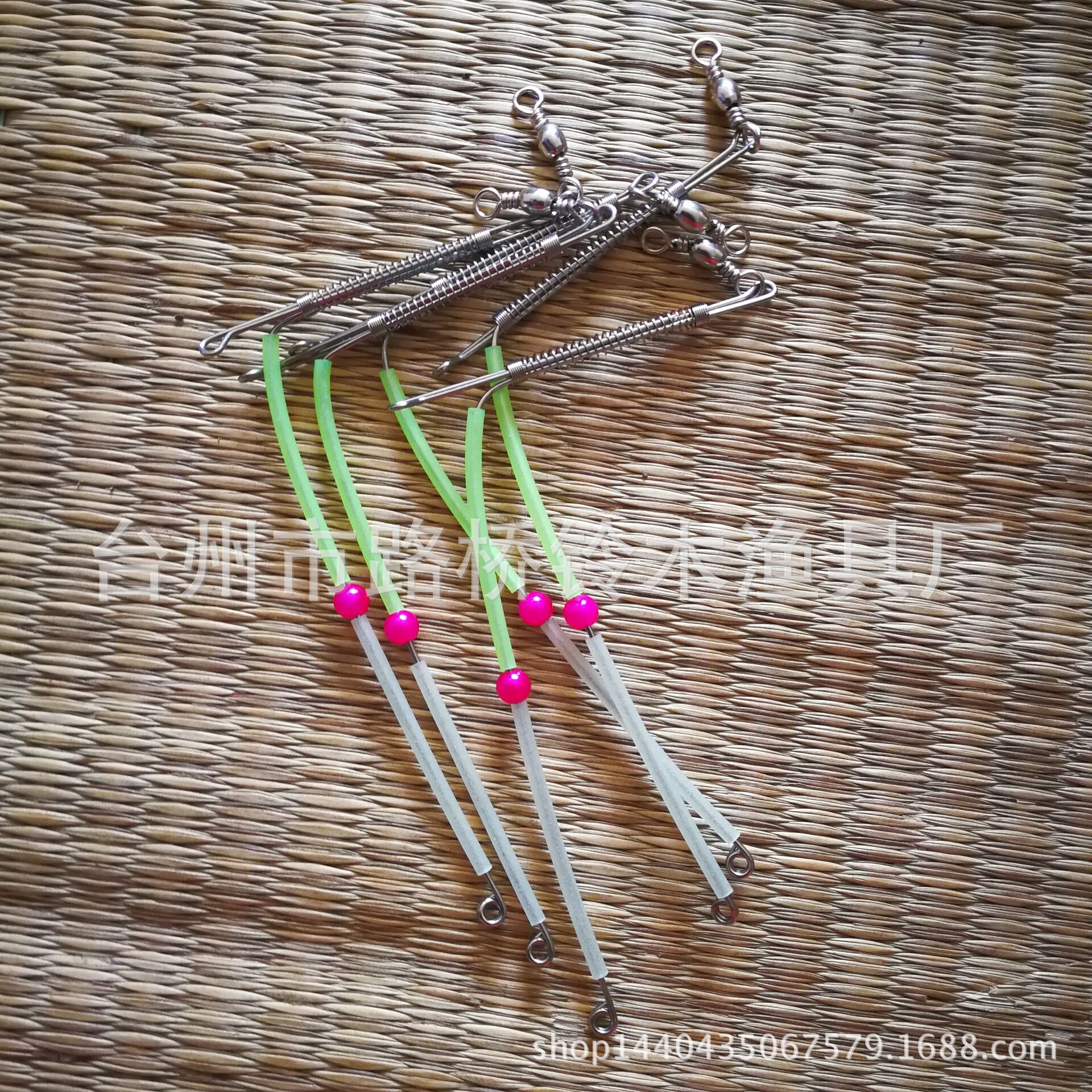 4 ganchos de alambre de 950 mm de largo. Volante de 90 mm. 10 cuentas luminosas. Volante de acero inoxidable. Alambre verde de acero inoxidable. Eslabón giratorio de acero inoxidable.5 ganchos de alambre, longitud 1100 mm, equilibrio 90 mm, 12 cuentas luminosasBalanza de acero inoxidable. Cable verde de acero inoxidable. Pasador giratorio de acero inoxidable.