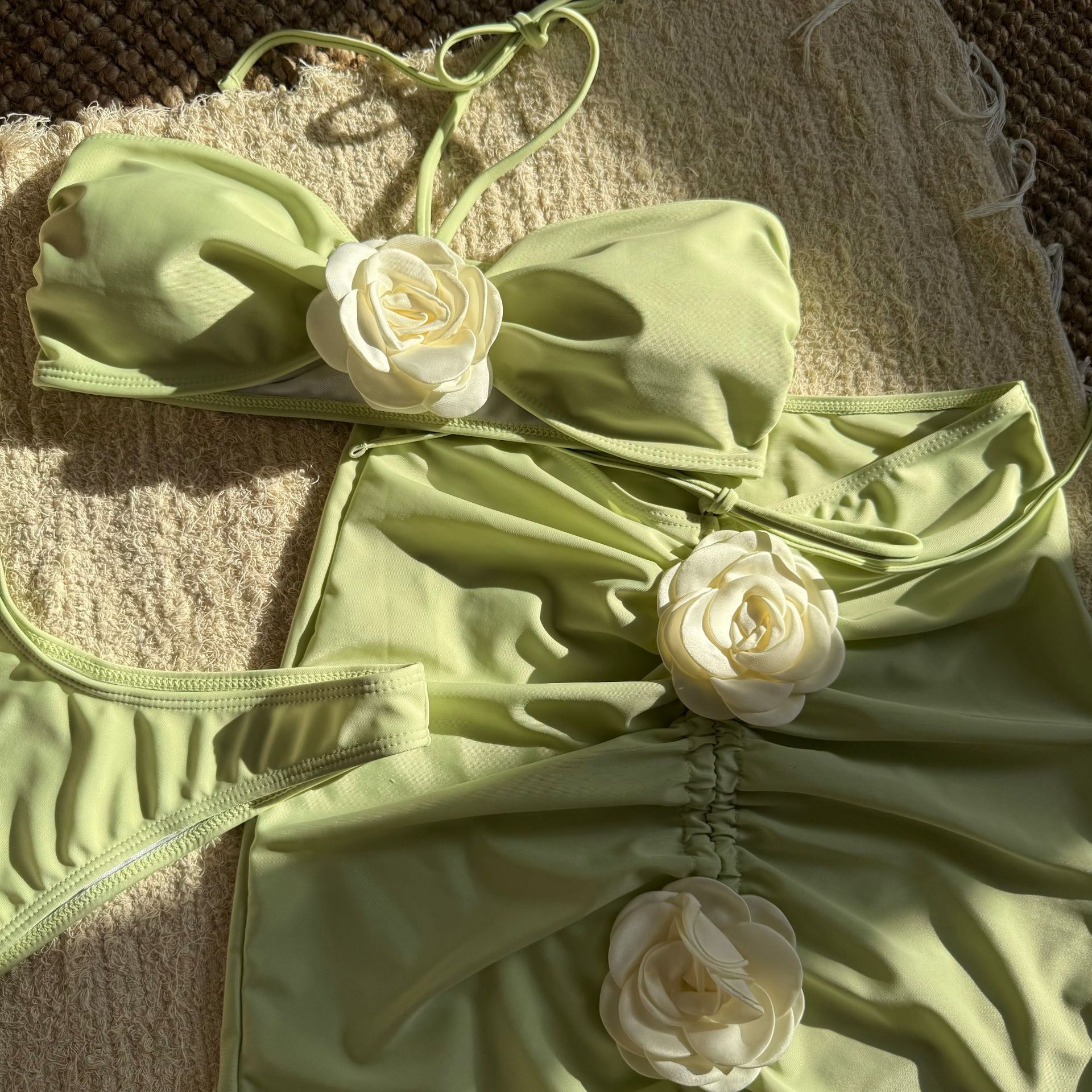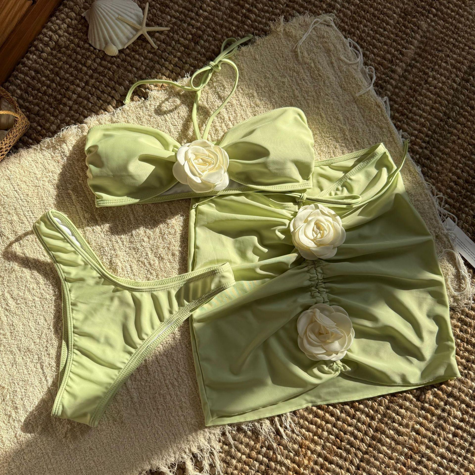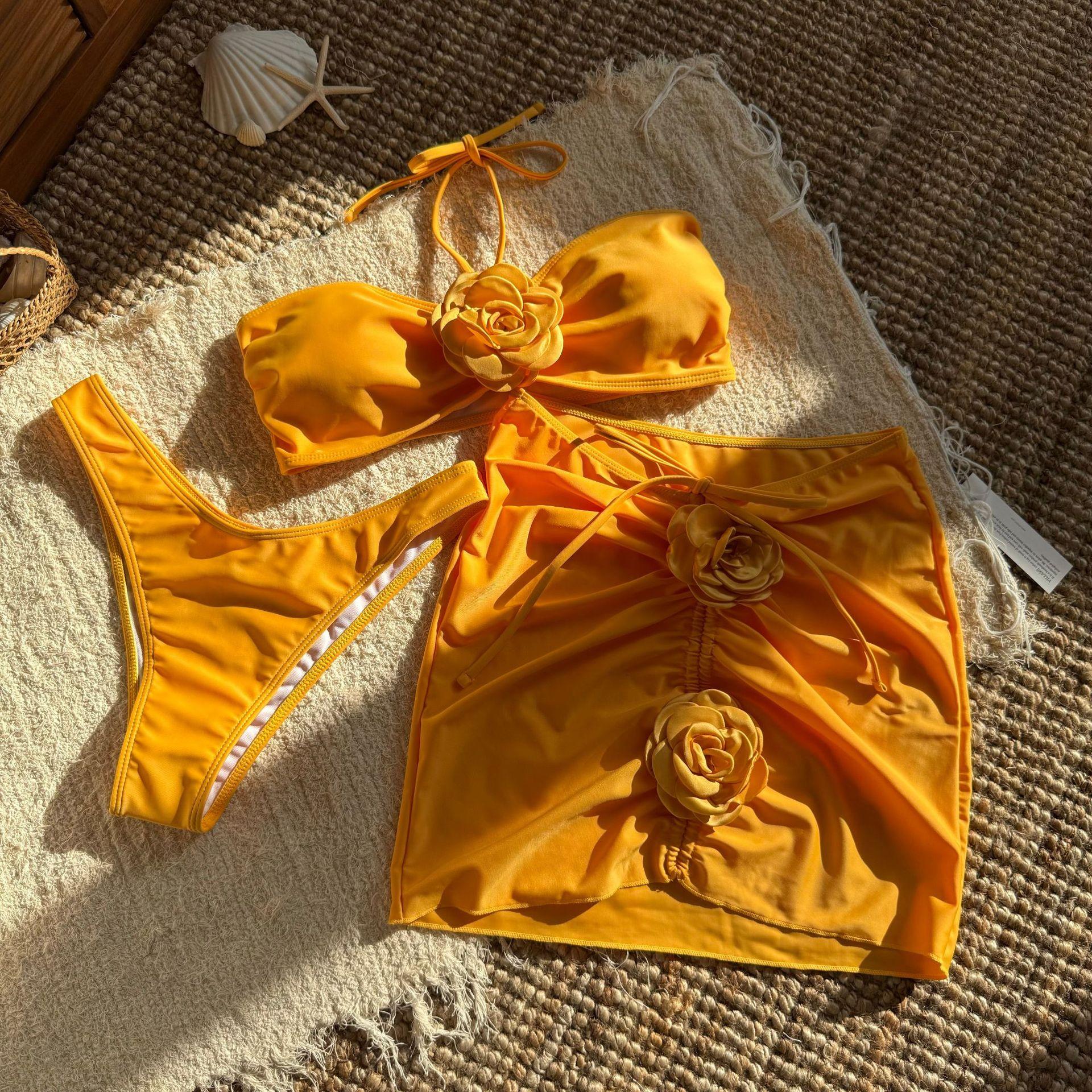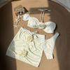 2025 Europeo y Americano Nuevo Sexy Rosa Tirantes Color Puro Traje de Baño de Tres Piezas Bikini Bikini Exportación Transfronteriza
