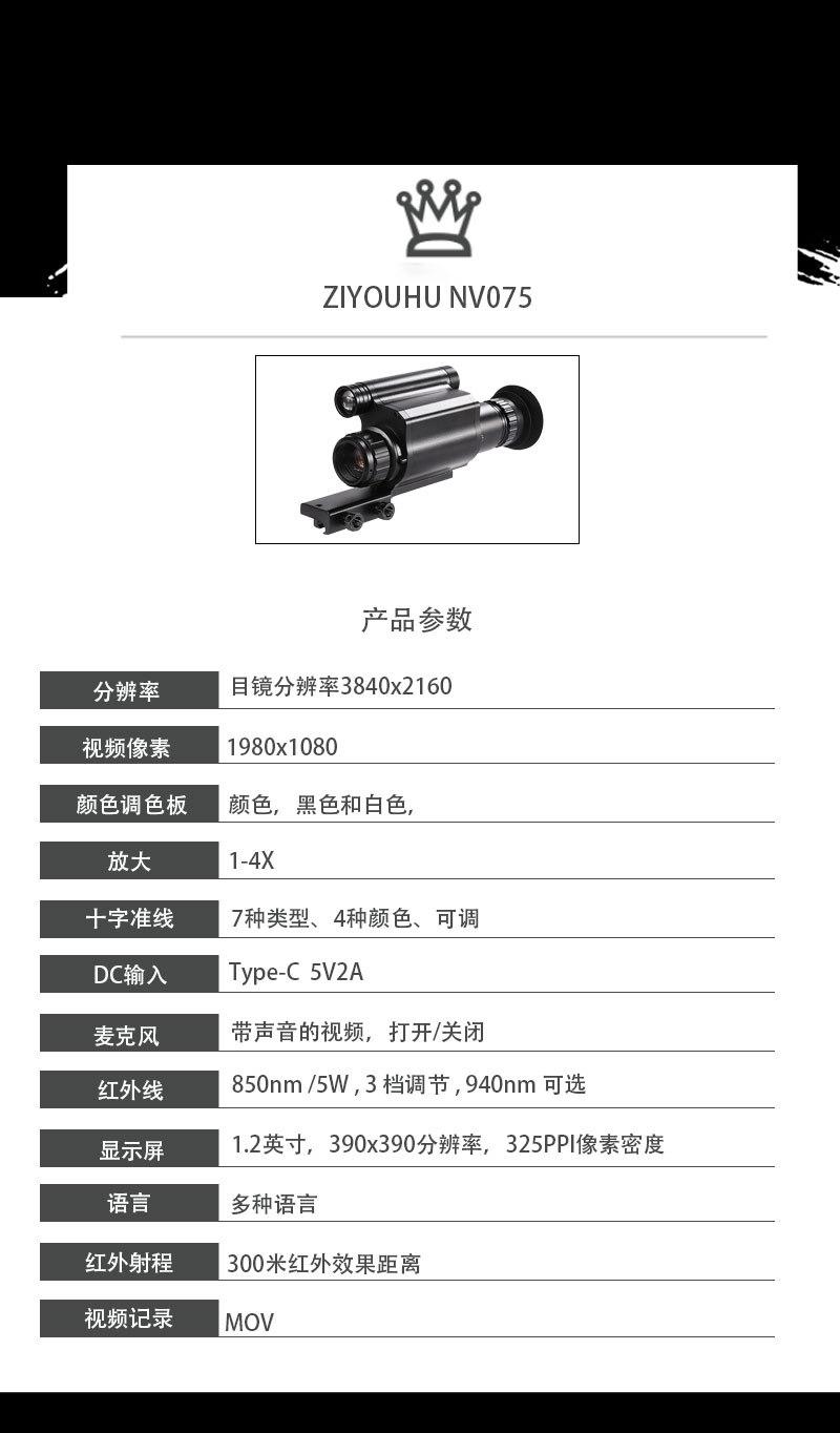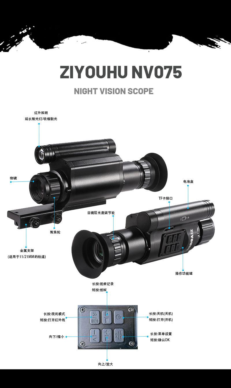 Telescopio cruzado digital infrarrojo de alta definición y alta potencia ZIYOUHUNV075, cámara negra, dispositivo de visión nocturna impermeable