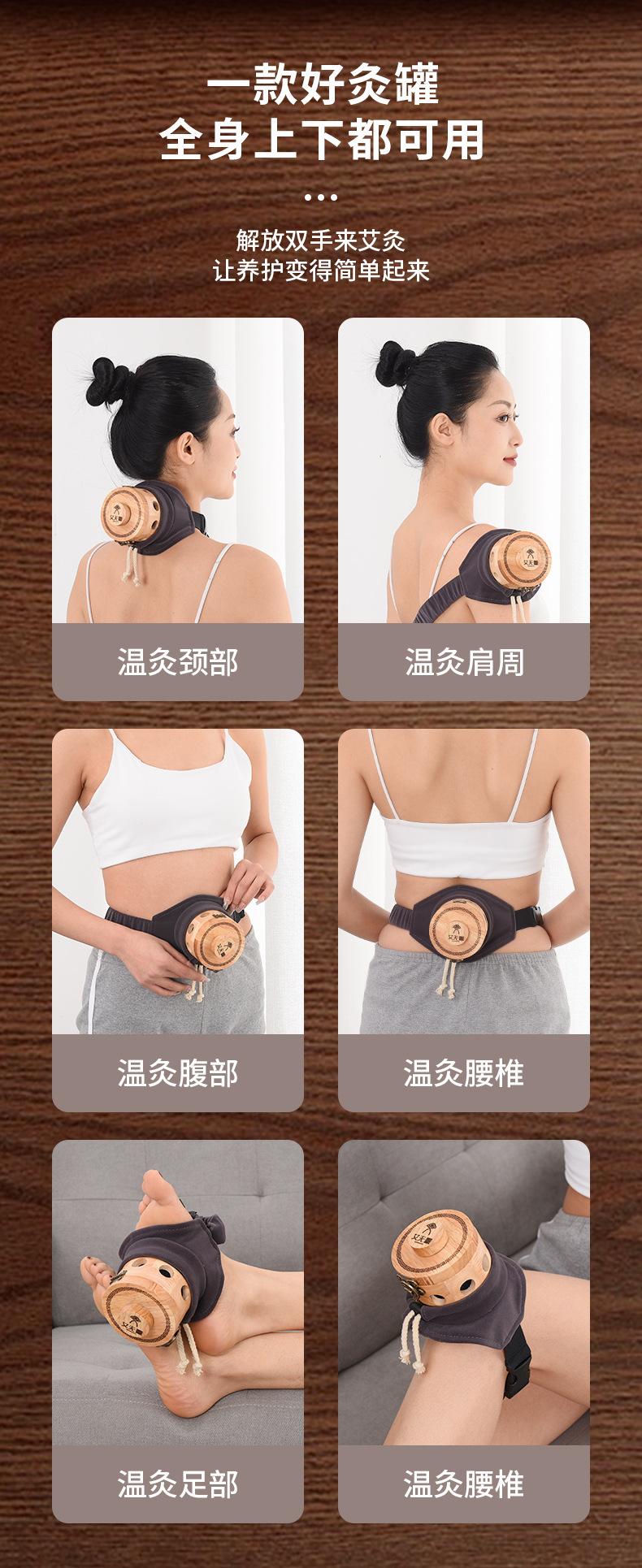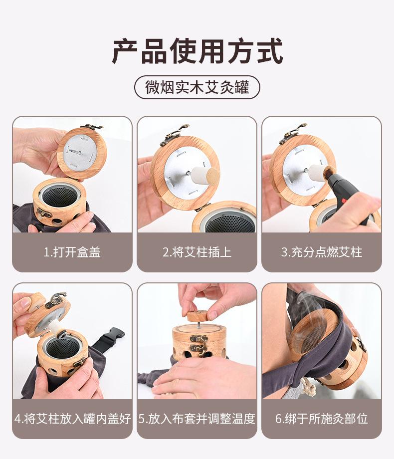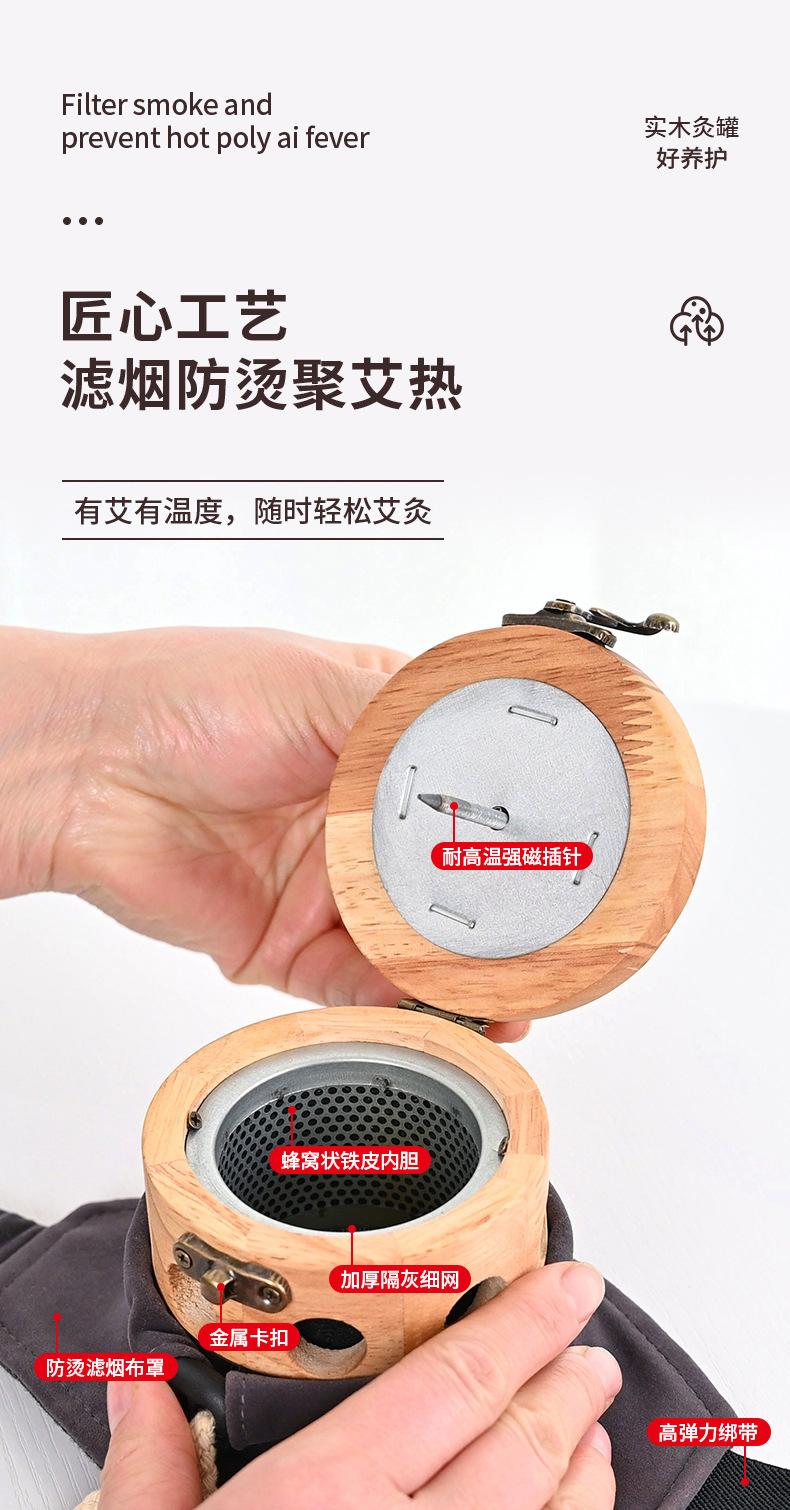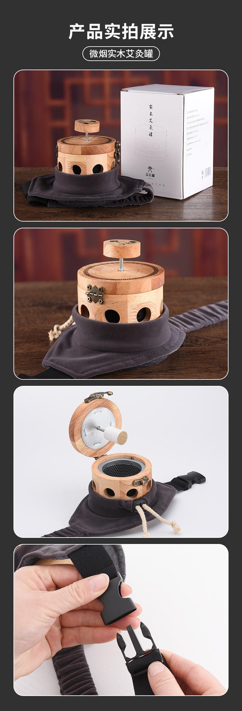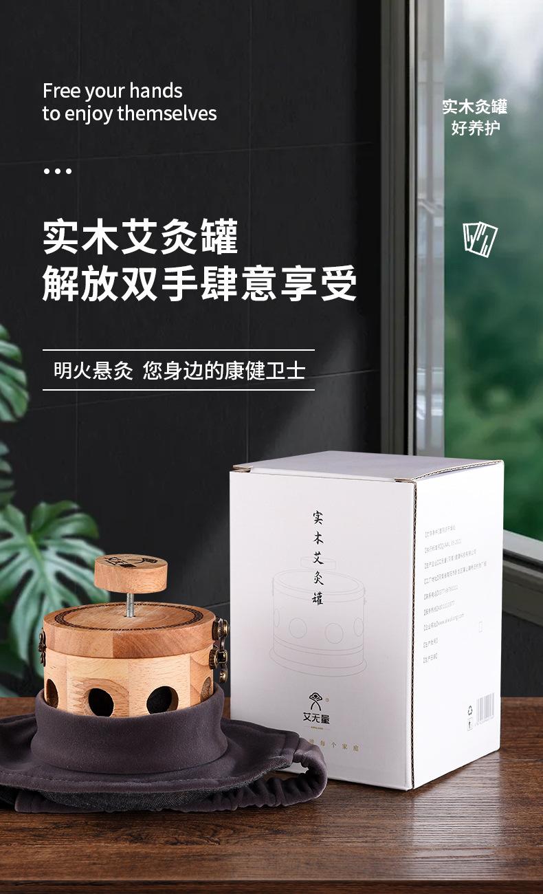 Solid wood moxibustion jar, Solid wood moxibustion box + 25 stone moxibustion columns + acupoint map 1, Moxibu...
