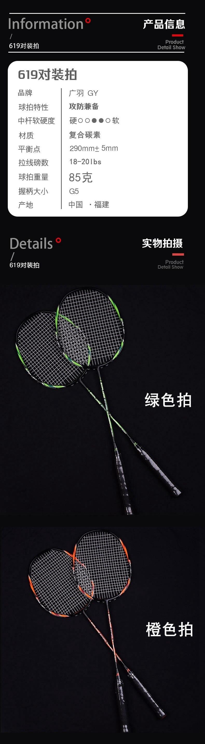 Raqueta de bádminton Guangyu 619 [Paquete de par], Peso de la raqueta 4U/85 gramos diseño [Peso encordado entre 90-92 gramos], Adopta diseño de marco de sección de caja clásica, Velocidad de la bola en el remate es rápida, Aumenta la velocidad de swing, Eje de alta elasticidad, Permite jugar donde quieras, Adecuado para: Uso recreativo y de entrenamiento para principiantes.