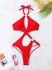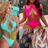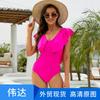 Bikini Sexy de Una Pieza de Color Sólido Traje de Baño de Una Pieza con Aberturas para Mujer 2025 Nuevo Bikini Europeo y Americano de Exportación Transfronteriza