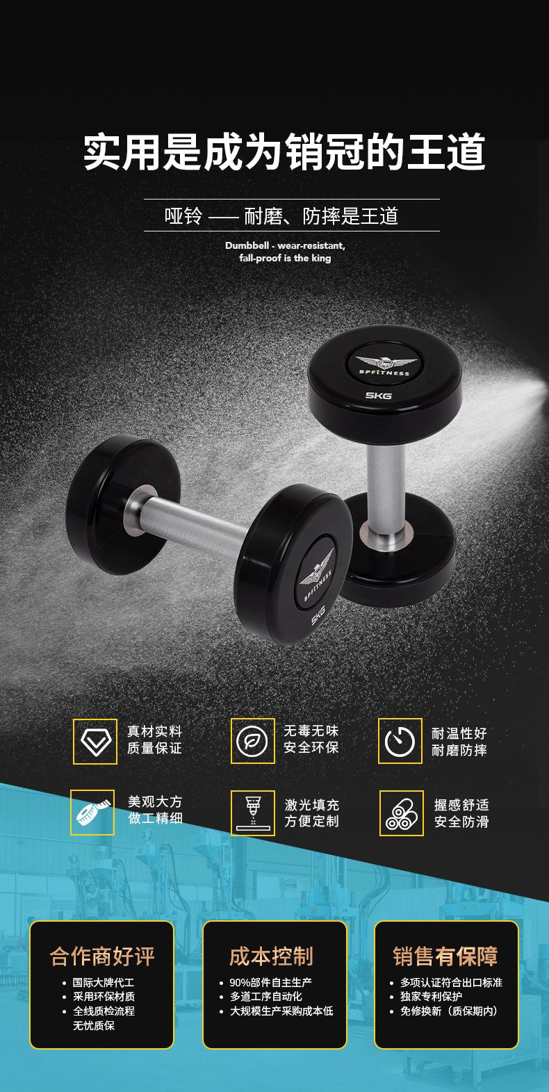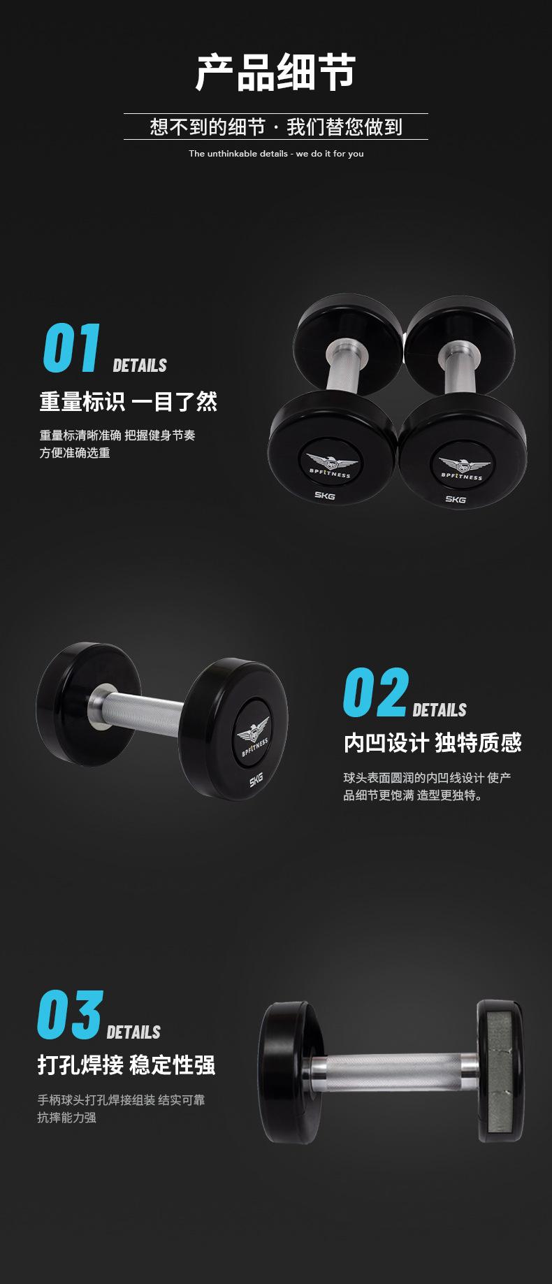 Mancuernas de cabeza redonda con CPU de Lijian, venta directa de fábrica, para gimnasio, estudio de fitness, antideslizantes y resistentes a caídas.