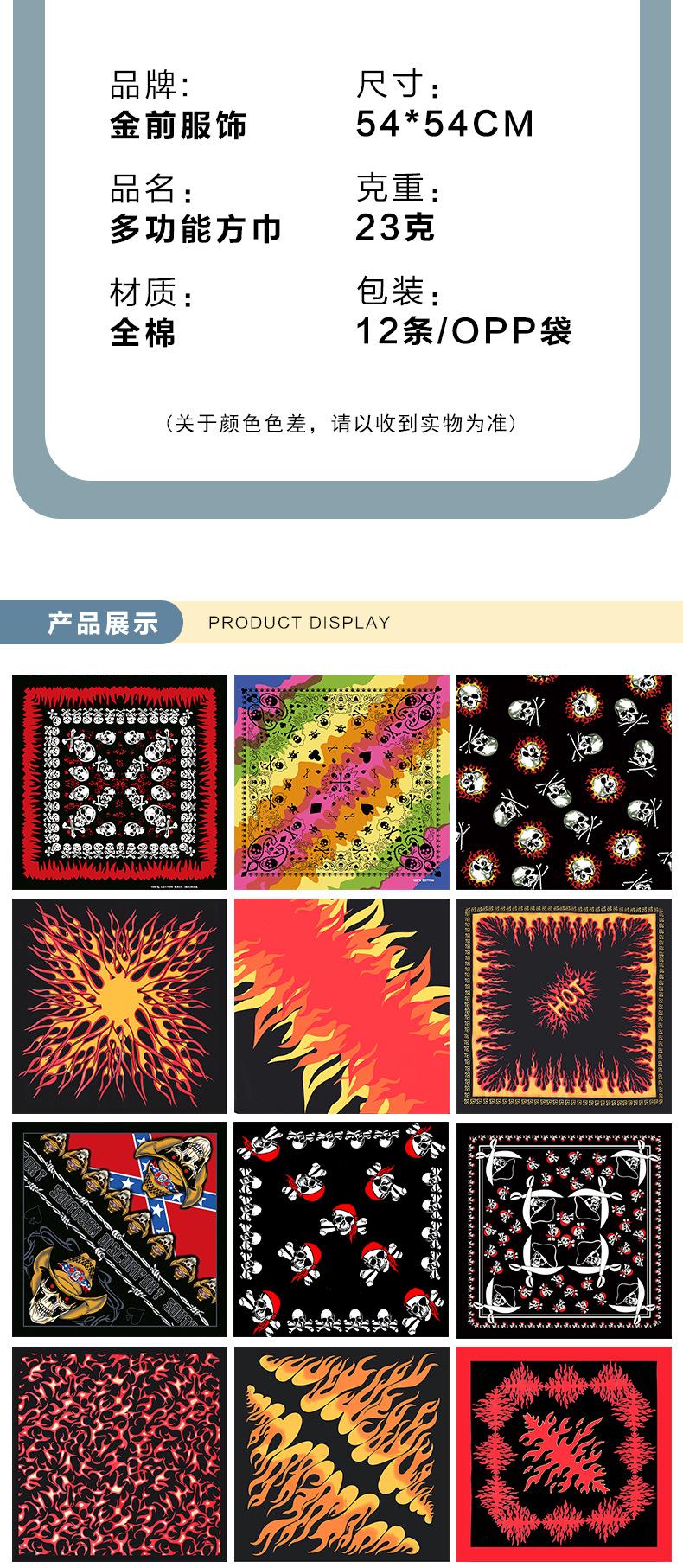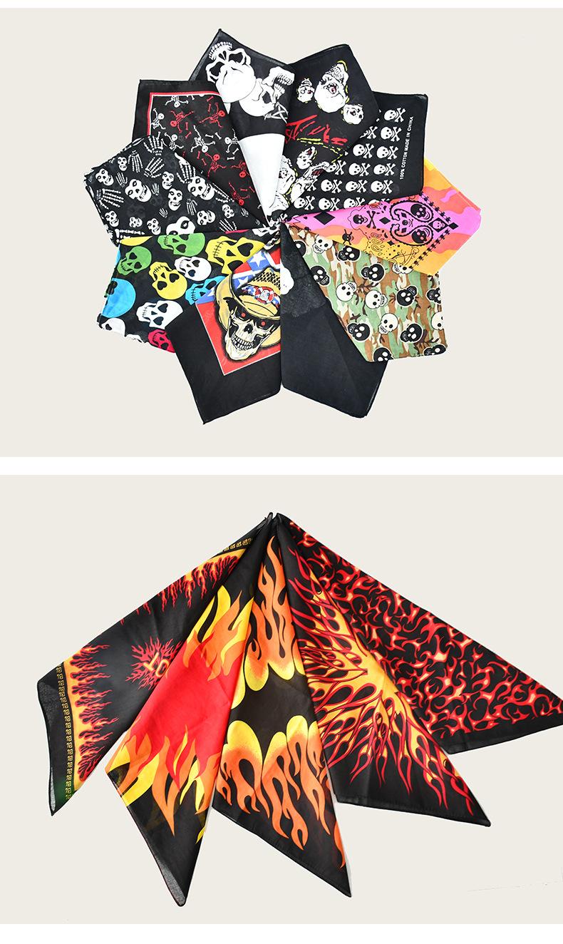 Bufanda de vestir para hombre y mujer, estilo hip hop, cuadrada, con cabeza de fantasma de Halloween, estilo europeo y americano, color negro, con calavera y llamas