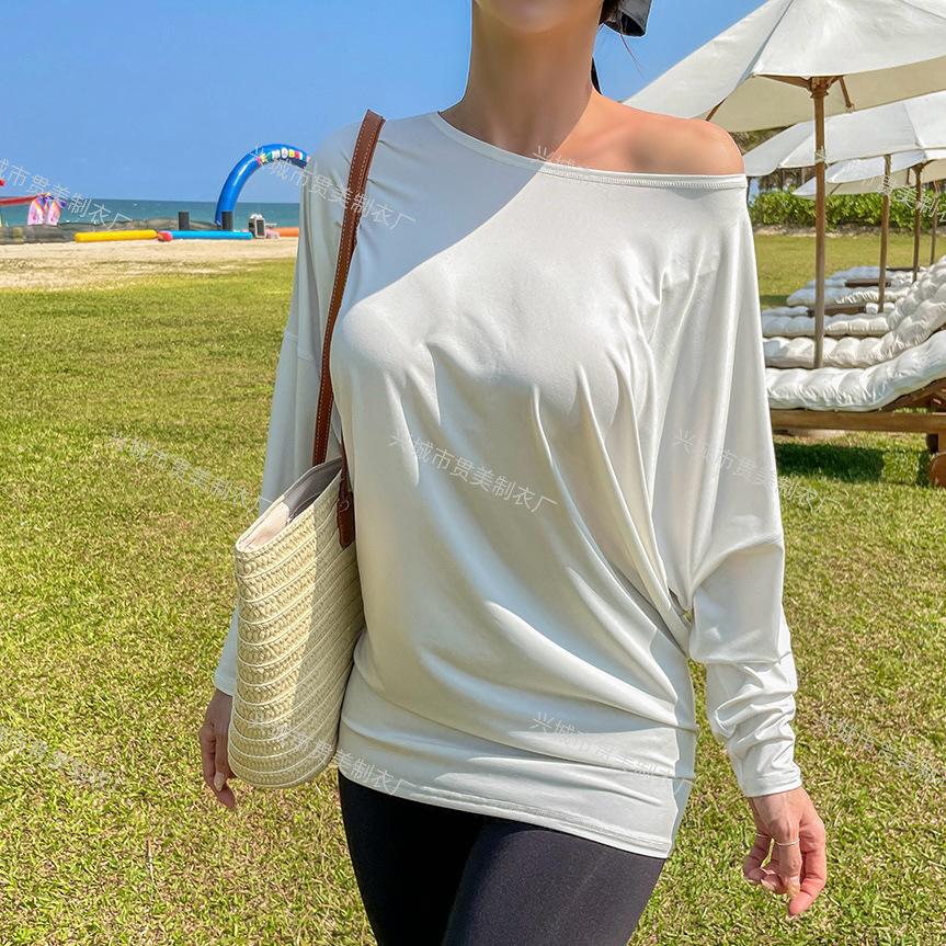Blusa de 4 Colores] Nuevo Estilo Ins Slim Protector Solar Vacaciones Coreano Verano Color Sólido Manga Larga Suelta Conservadora