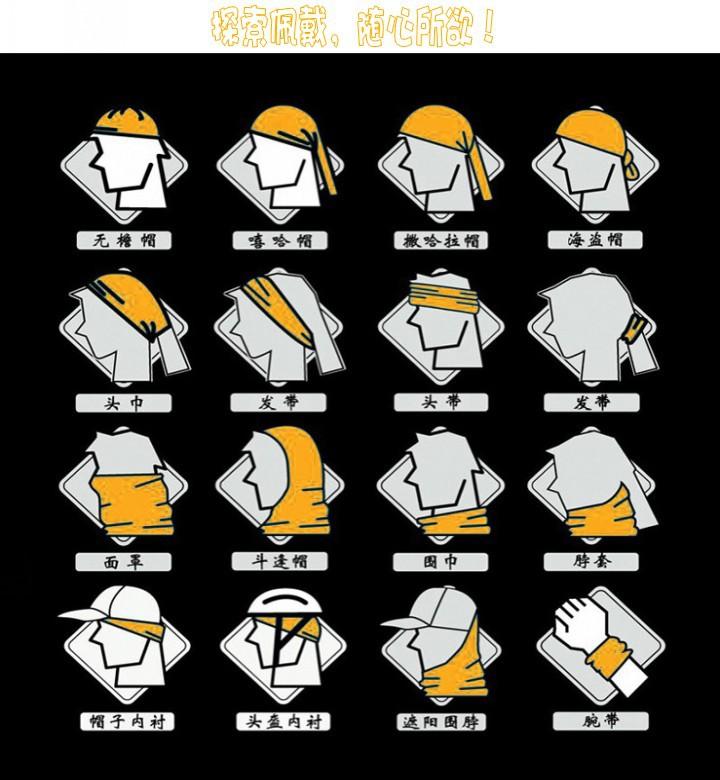 La versatilidad del pañuelo mágico reside en sus diversas formas de atarlo. Se puede usar como cubrecuello, pañuelo para la cabeza, diadema, gorro, sombrero pirata, etc. Su versatilidad radica en su idoneidad para diversas condiciones exteriores. Ya sea para esquí en invierno, protección solar en verano o deportes nocturnos, existe una serie de productos adecuada. Se puede usar en muchos deportes al aire libre, incluyendo: esquí, montañismo, motociclismo, ciclismo, carrera, senderismo, tenis, etc. Por supuesto, también es ideal para el uso casual diario.