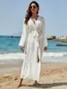 Nueva falda larga de playa transfronteriza camisa de cuentas huecas gancho a mano para mujer cuello en V bikini falda cubierta de playa Amazon superventas