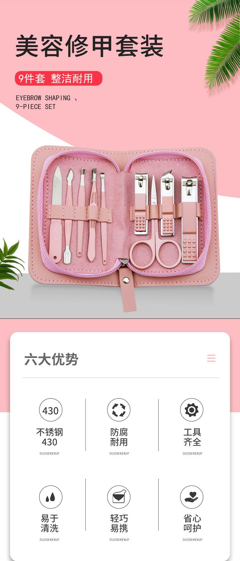 Suministro directo de fábrica cortaúñas juego de 9 piezas juego de cortaúñas cortaúñas herramientas de manicura