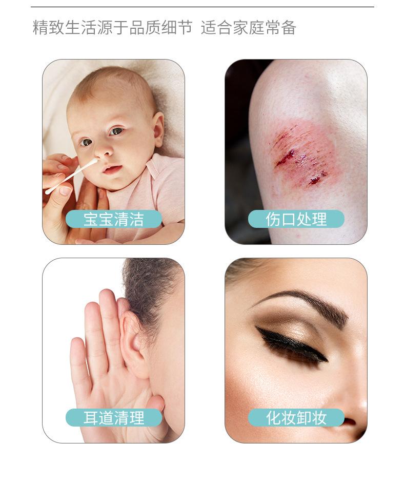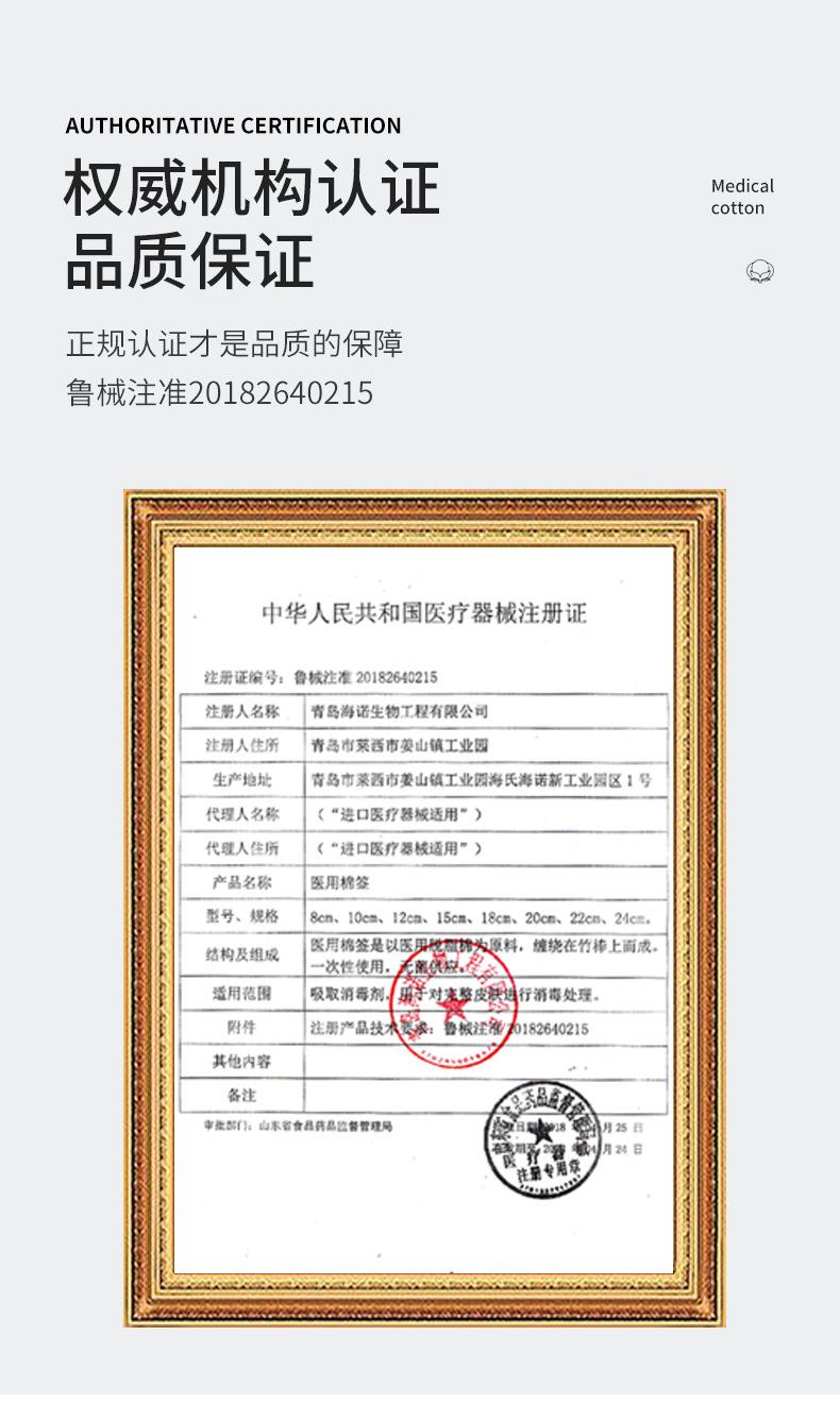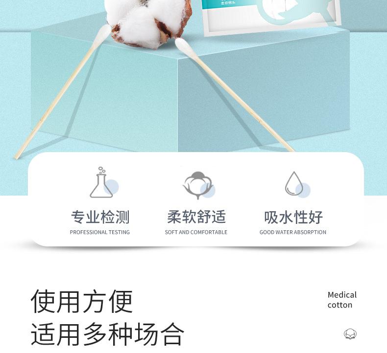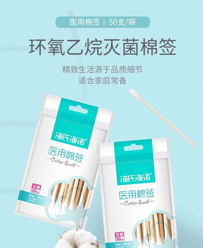 Hisopos de Algodón Médico Haishi Hainuo de 10 cm Limpieza y Desinfección de Heridas Desechables de un solo cabezal con cabeza grande 50 Piezas por Bolsa