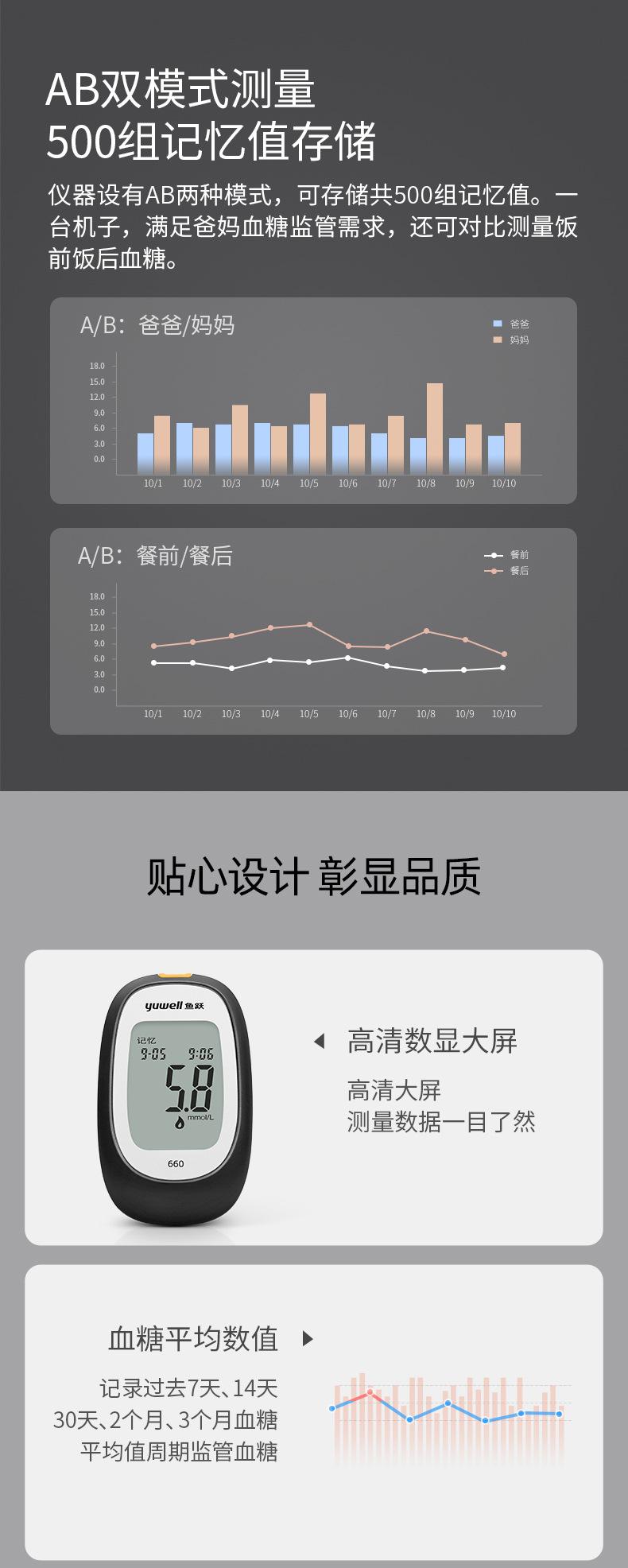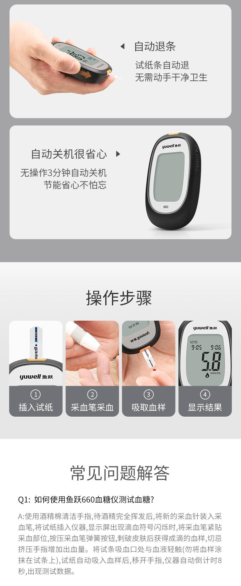 Type 660 blood glucose meter stand-alone (excluding test strips), 50 pieces of 660 blood glucose test strips, ...