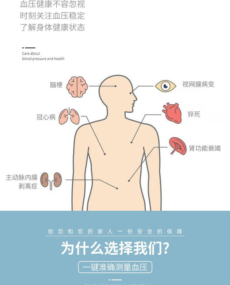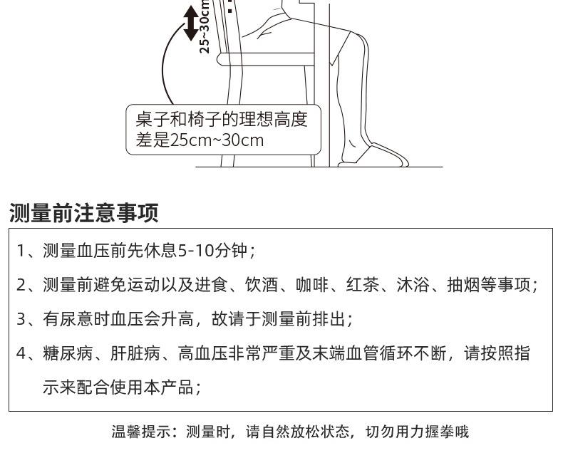 Esfigmomanómetro de brazo: Mide la presión arterial con precisión. Es necesario quitarse la camisa para tomar la presión, pero es grande e incómodo de llevar. Funciona con una fuente de alimentación regulada. El tensiómetro de brazo ofrece mayor precisión en la medición, ya que el brazo está más cerca del corazón y el margen de error no es muy grande. Sin embargo, la precisión en la muñeca es ligeramente menor. Por lo tanto, los tensiómetros electrónicos de muñeca no son adecuados para pacientes con trastornos circulatorios. Se recomienda a pacientes con diabetes, hiperlipidemia, hipertensión y otras enfermedades, así como a personas mayores, que elijan tensiómetros electrónicos de brazo.