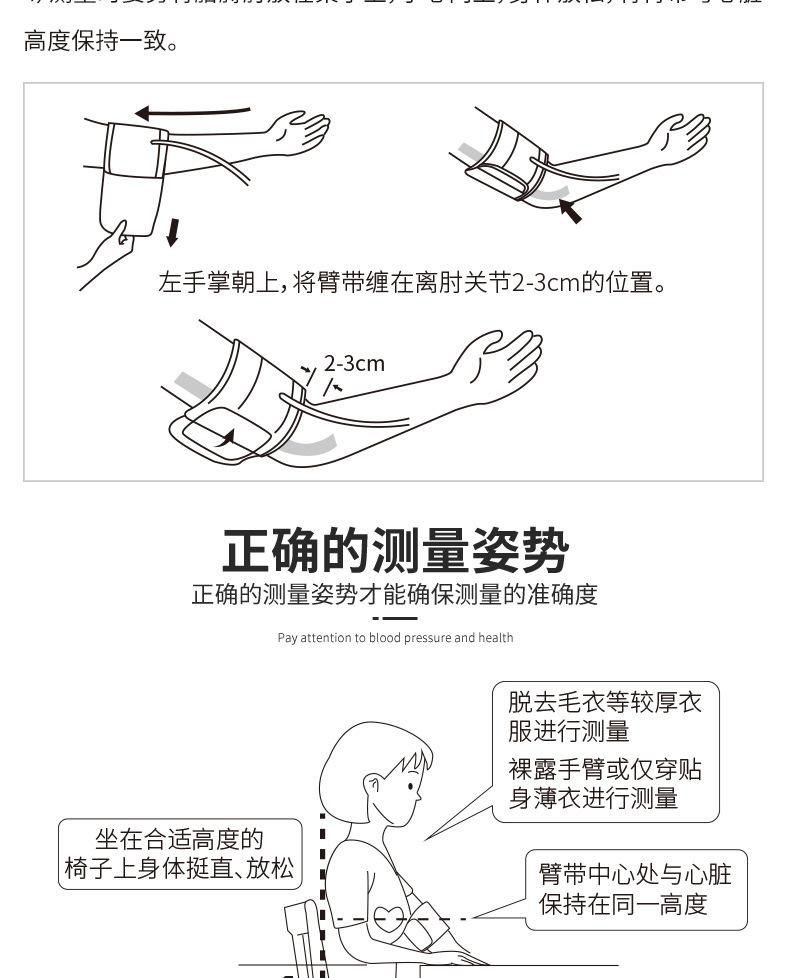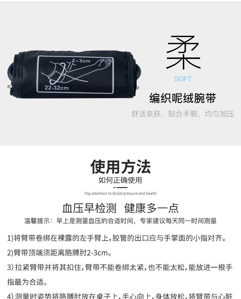 El método de medición del esfigmomanómetro de brazo es similar al del esfigmomanómetro de mercurio tradicional. Mide la arteria braquial. Dado que el brazalete se coloca en la parte superior del brazo, su estabilidad de medición es mejor que la del esfigmomanómetro de muñeca. Es más adecuado para personas mayores, con latidos cardíacos irregulares o con envejecimiento vascular periférico causado por diabetes. Su desventaja es que no es tan práctico como un esfigmomanómetro electrónico de muñeca.