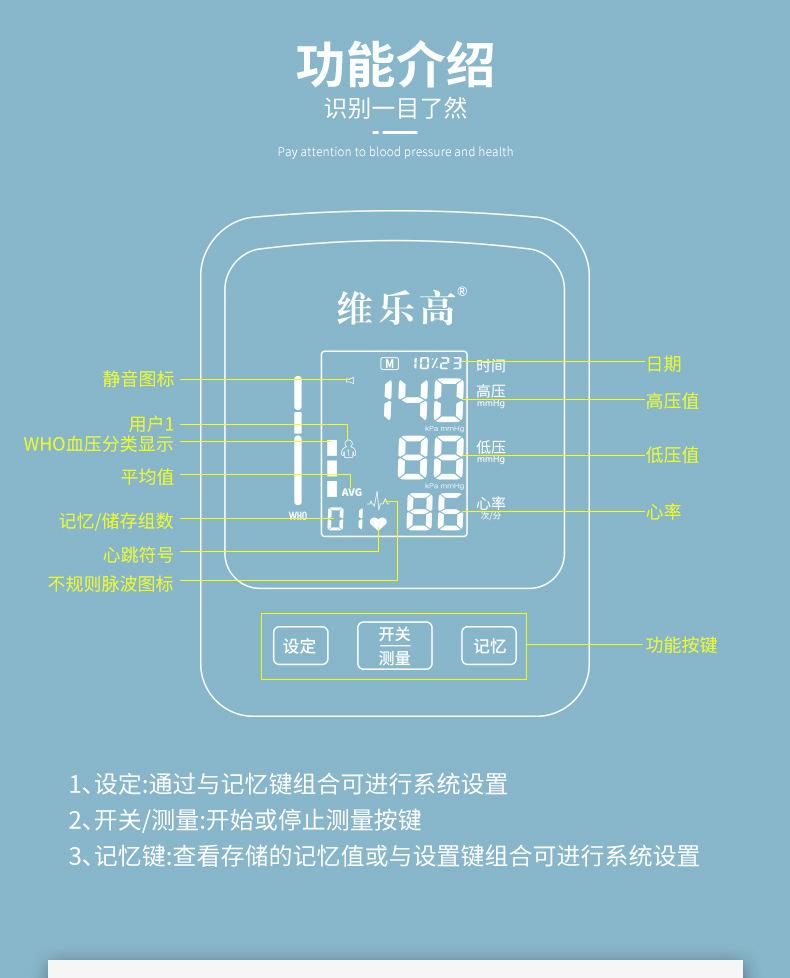 Medición con un solo botón, monitoreo de frecuencia cardíaca, brazalete cómodo, pantalla grande y caracteres grandes, presurización inteligente, medición precisa, pequeño y exquisito, fácil de transportar. |