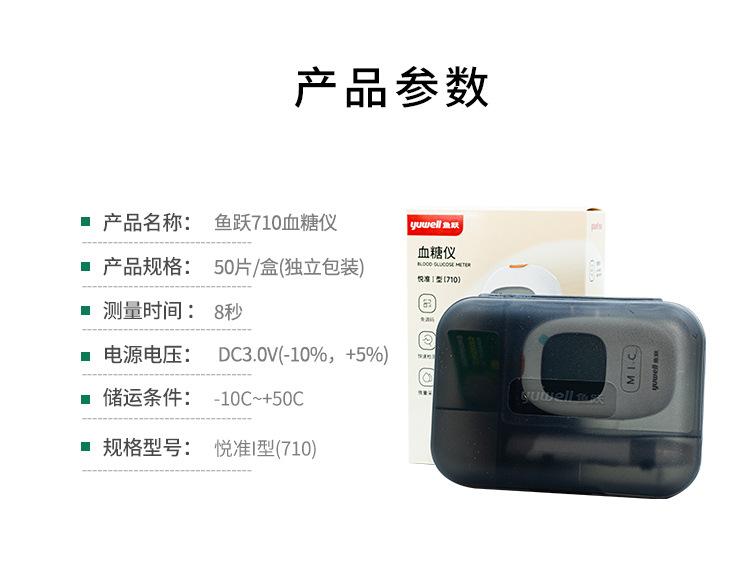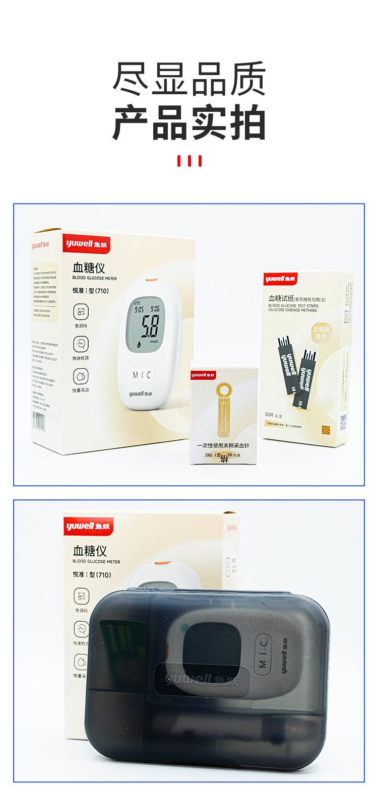 Medidor de glucosa en sangre Yuyue 710 con 50 tiras reactivas y 50 agujas para recolección de sangre, medidor de glucosa en sangre médico doméstico sin código