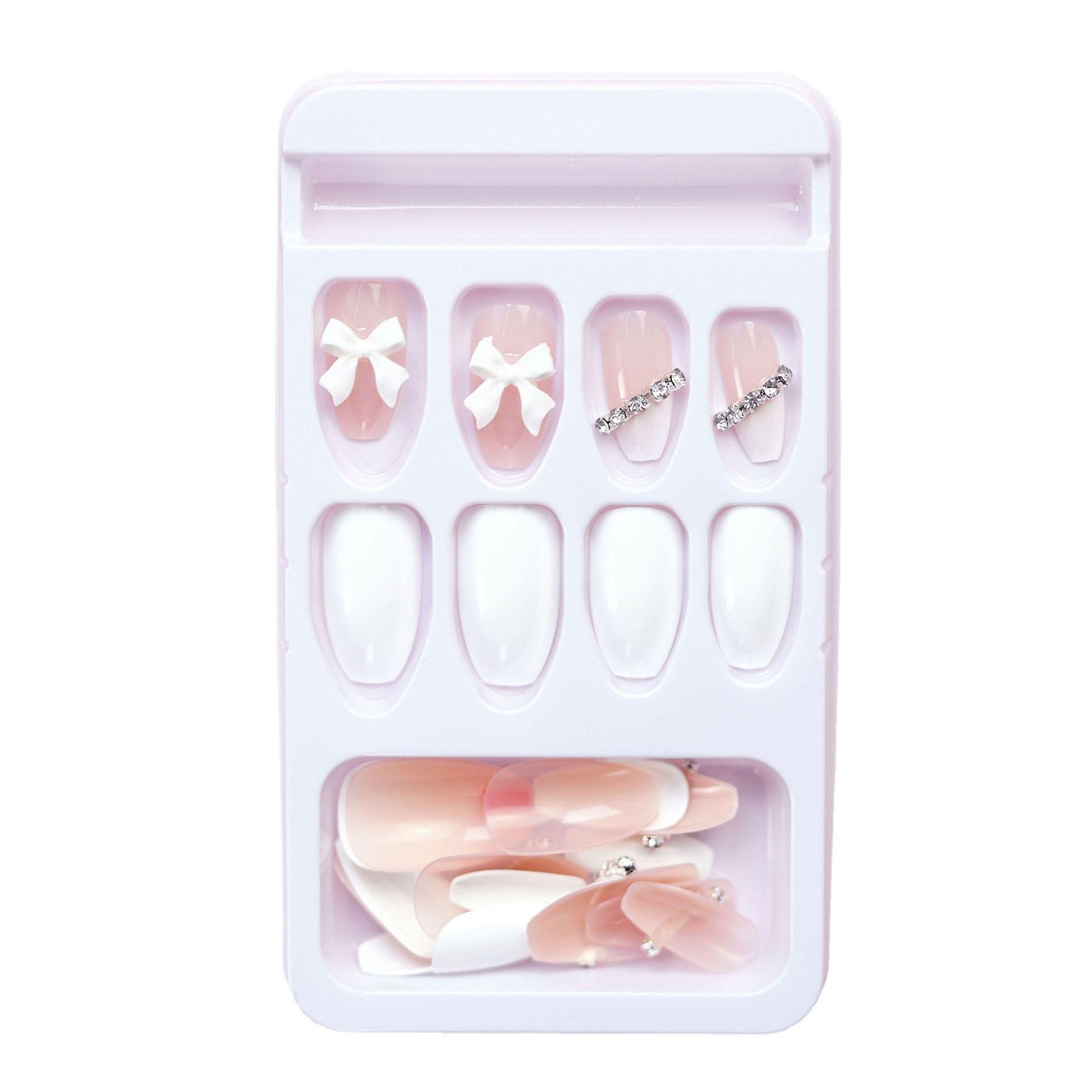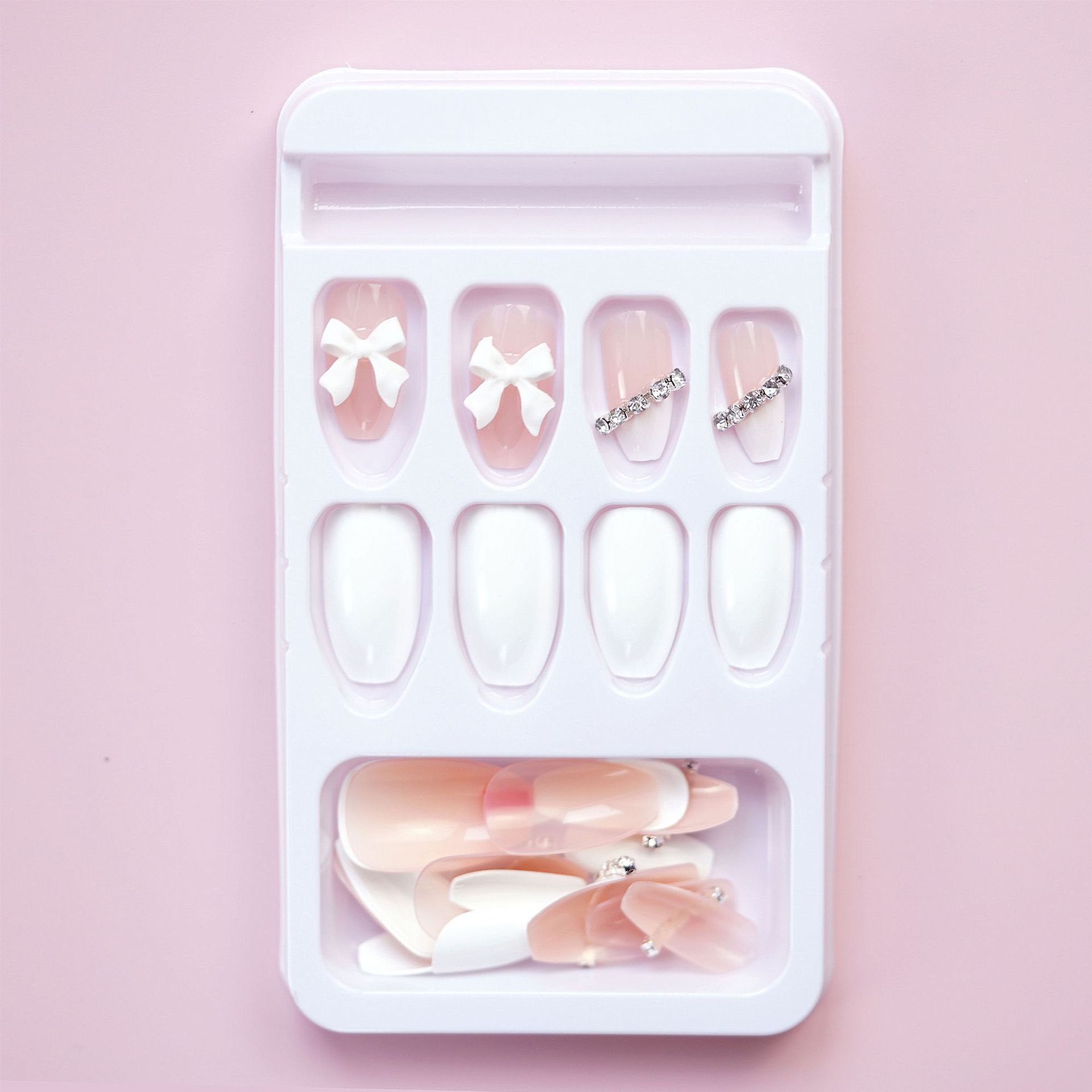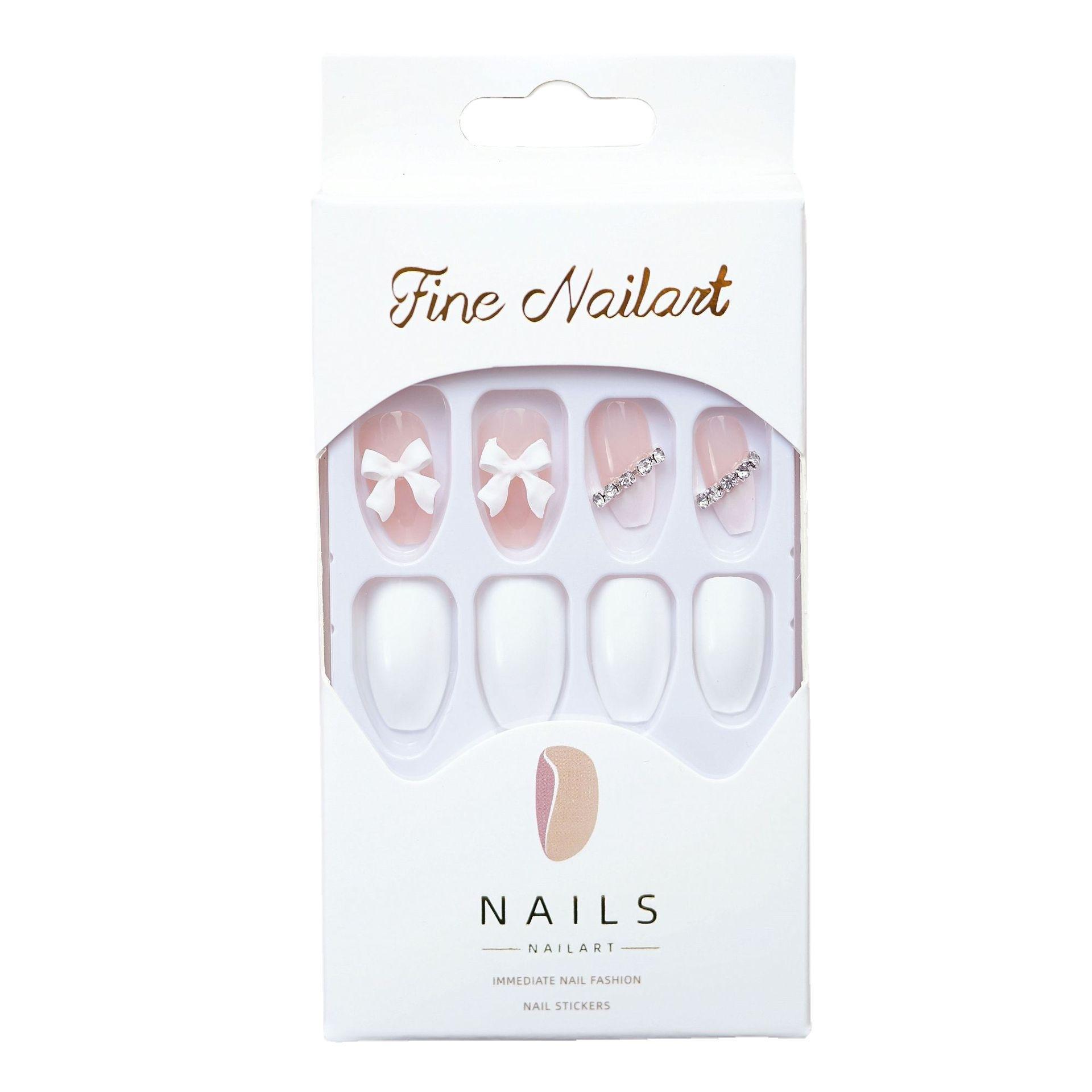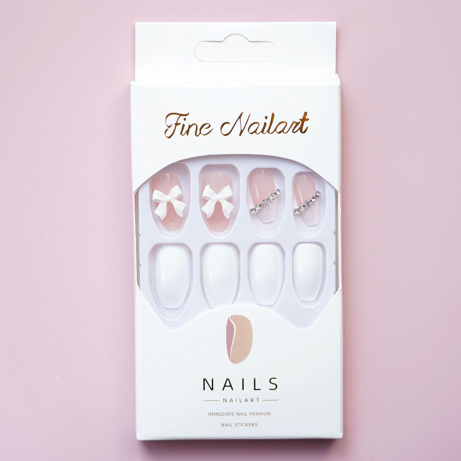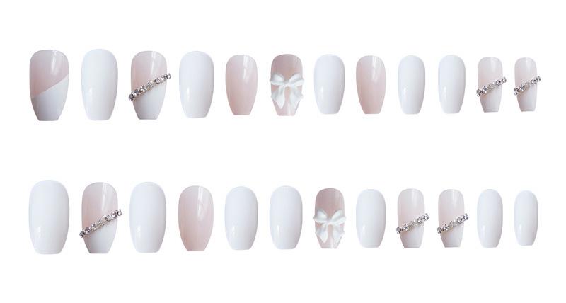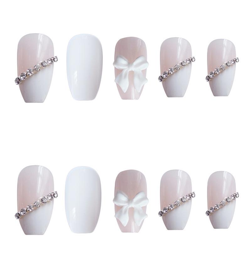 Z-449 Mariposa Blanca Cadena de Plata Pieza de Uñas Postizas con Pasta de Uñas Terminada Pasta de Uñas 24 Piezas Pasta de Uñas al Por Mayor