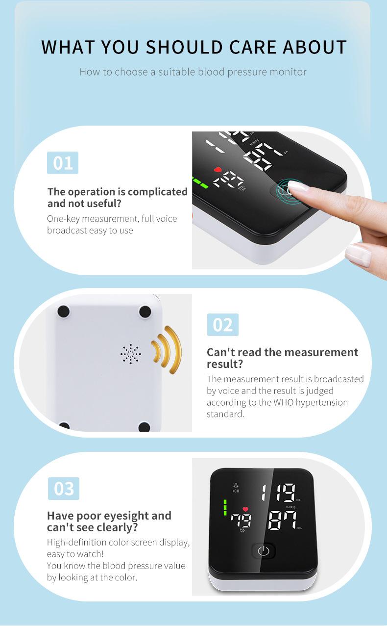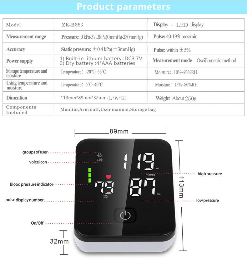 Comercio exterior inglés Salud Salud Pantalla LED tensiómetro de brazo superior Pulso Frecuencia cardíaca Fabricantes de instrumentos de medición para el hogar al por mayor