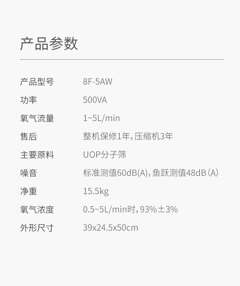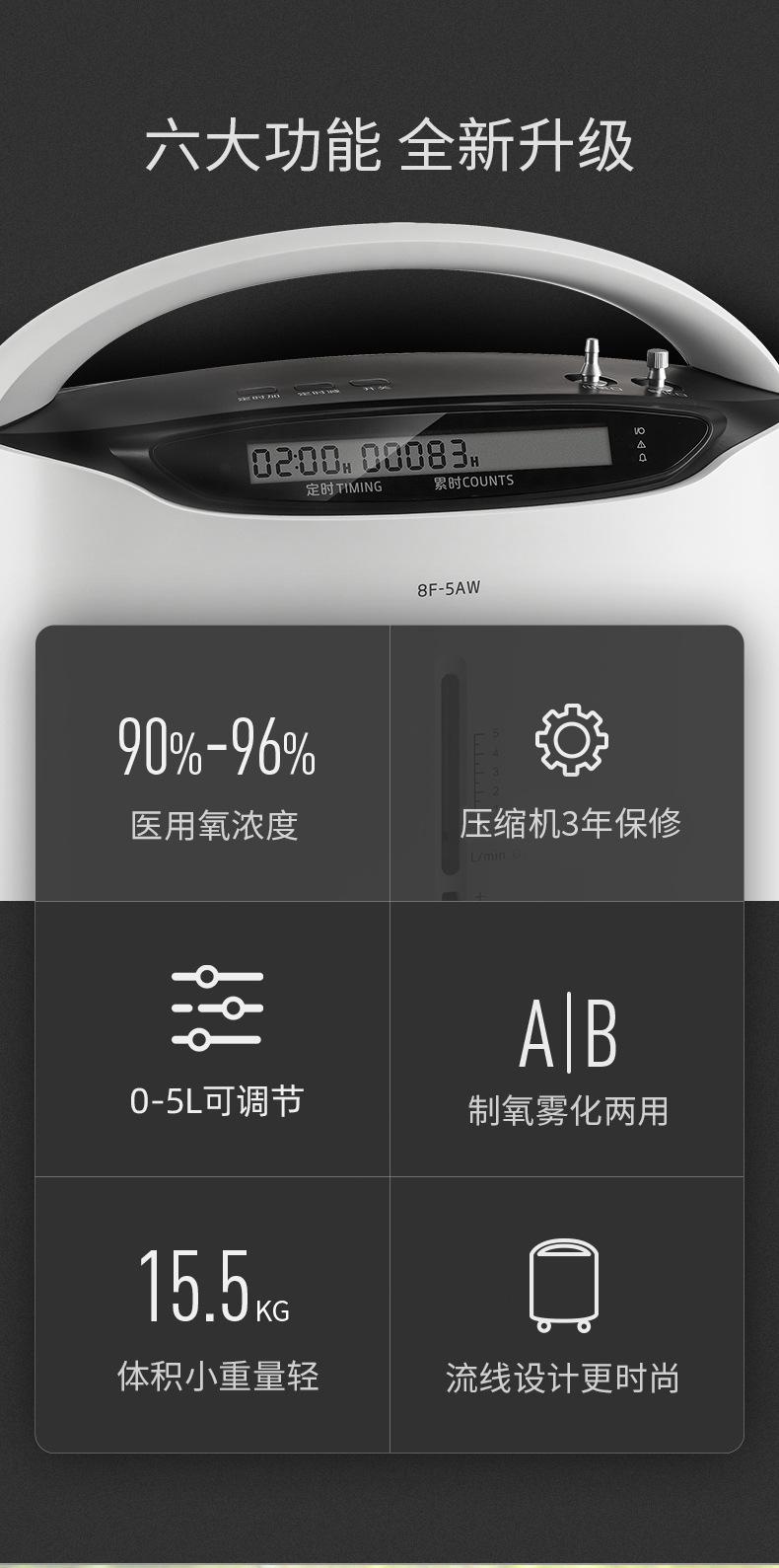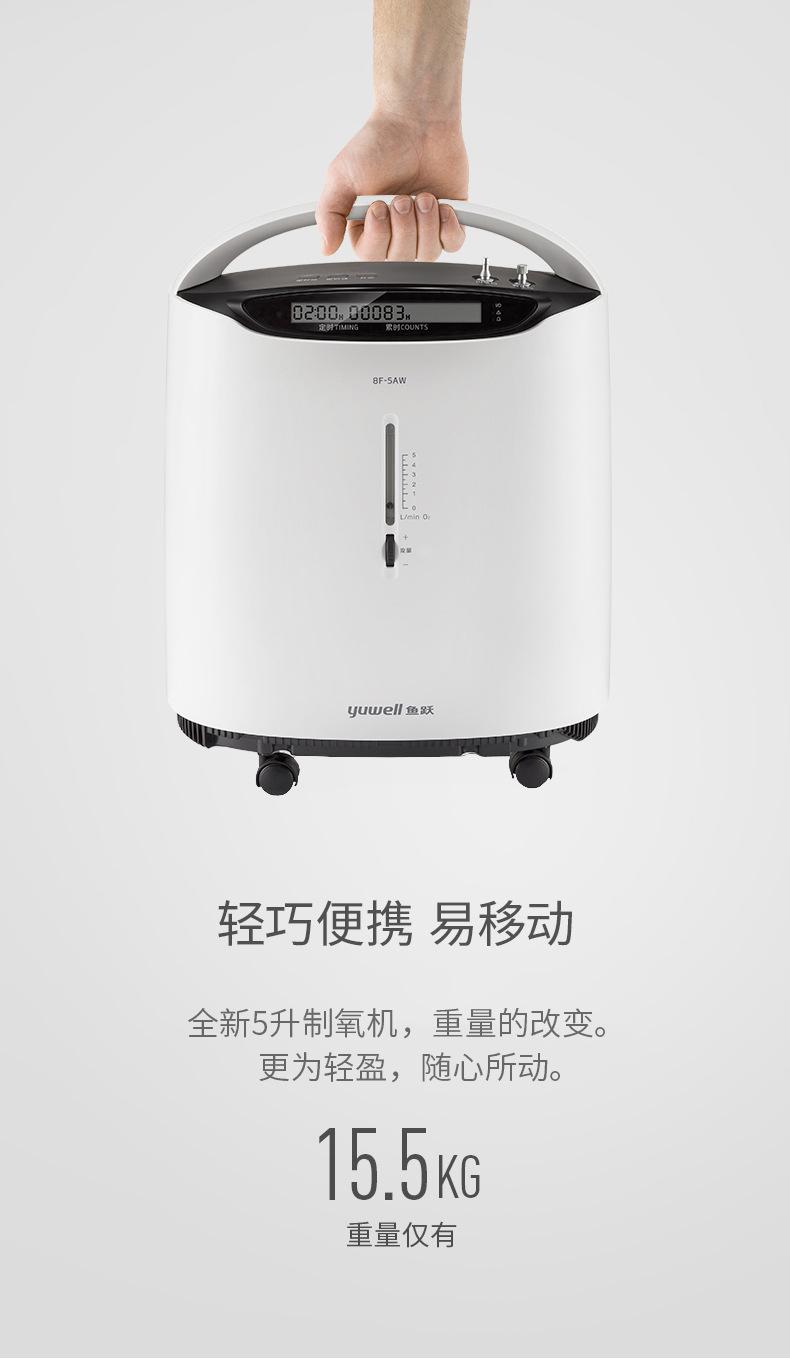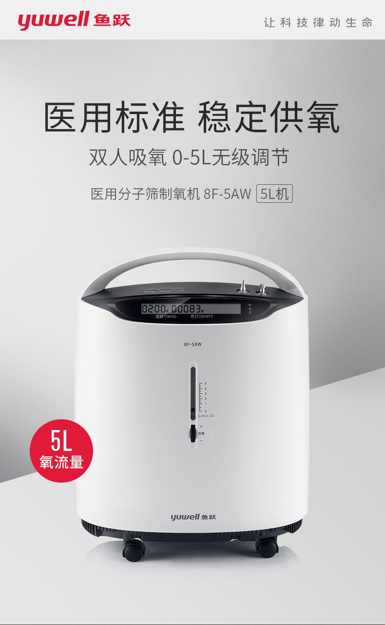 Concentrador de Oxígeno Yuyue 8F-5Aw Inhalador de Oxígeno Pequeño Doméstico 5 Litros Grado Médico Doble Inhalador de Oxígeno con Nebulización 5L