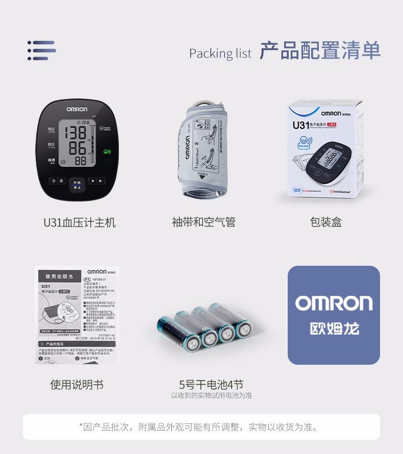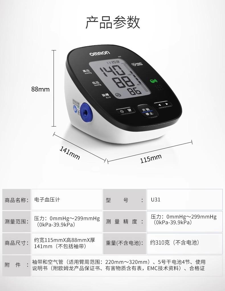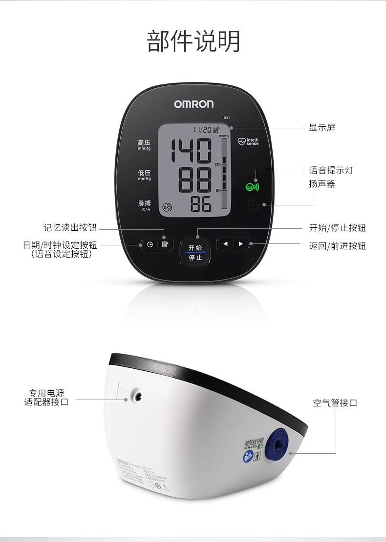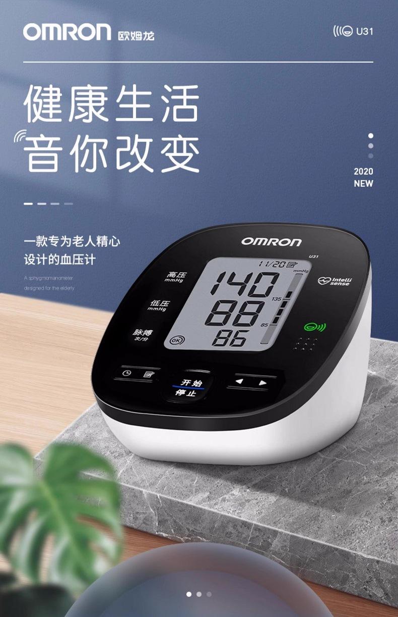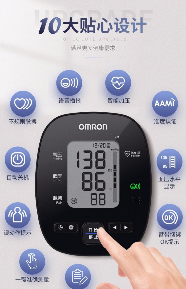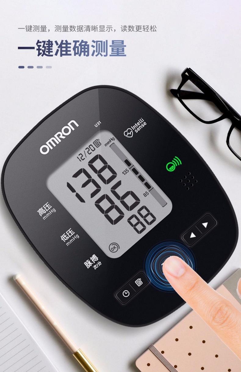 Tensiómetro electrónico Omron para brazo, instrumento de medición de presión arterial de precisión para el hogar, con voz, U31