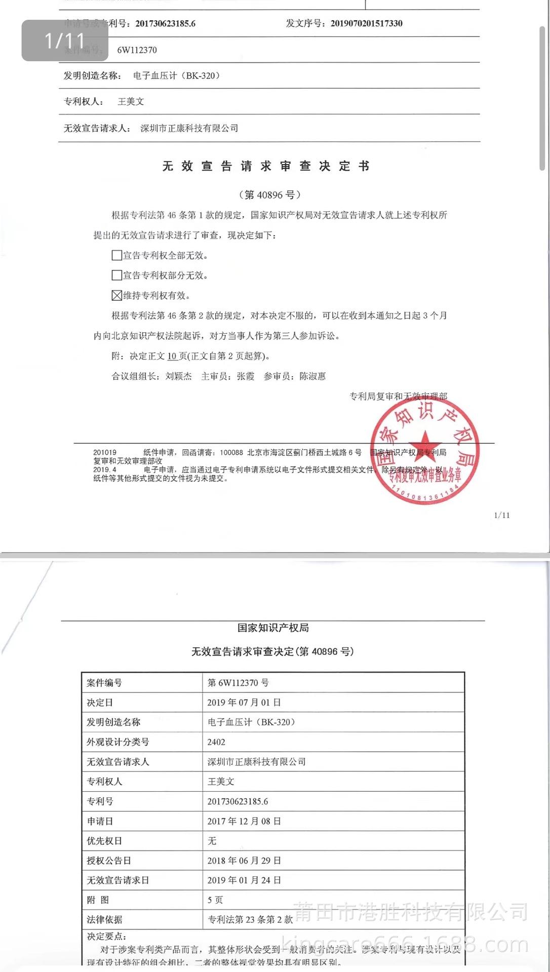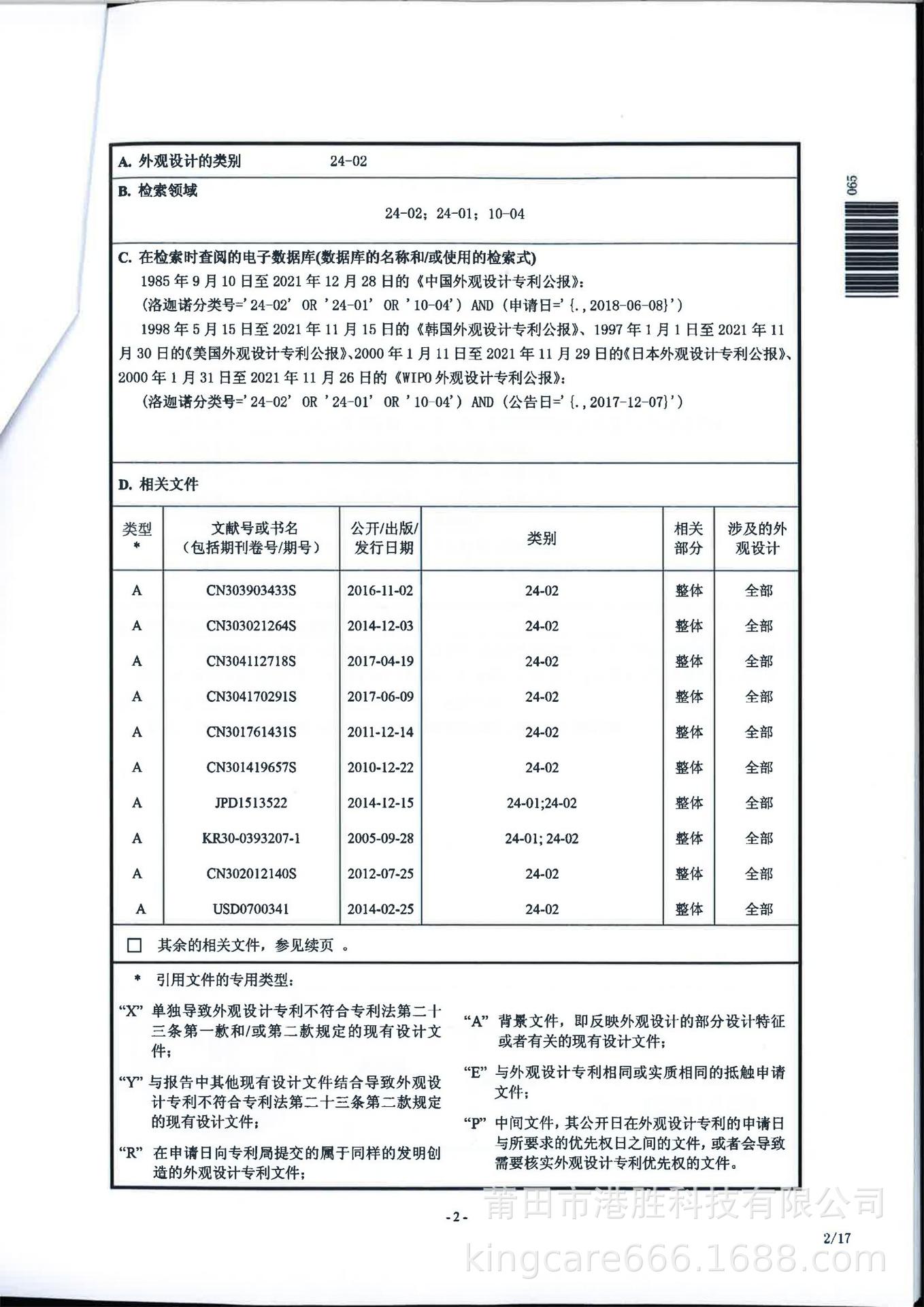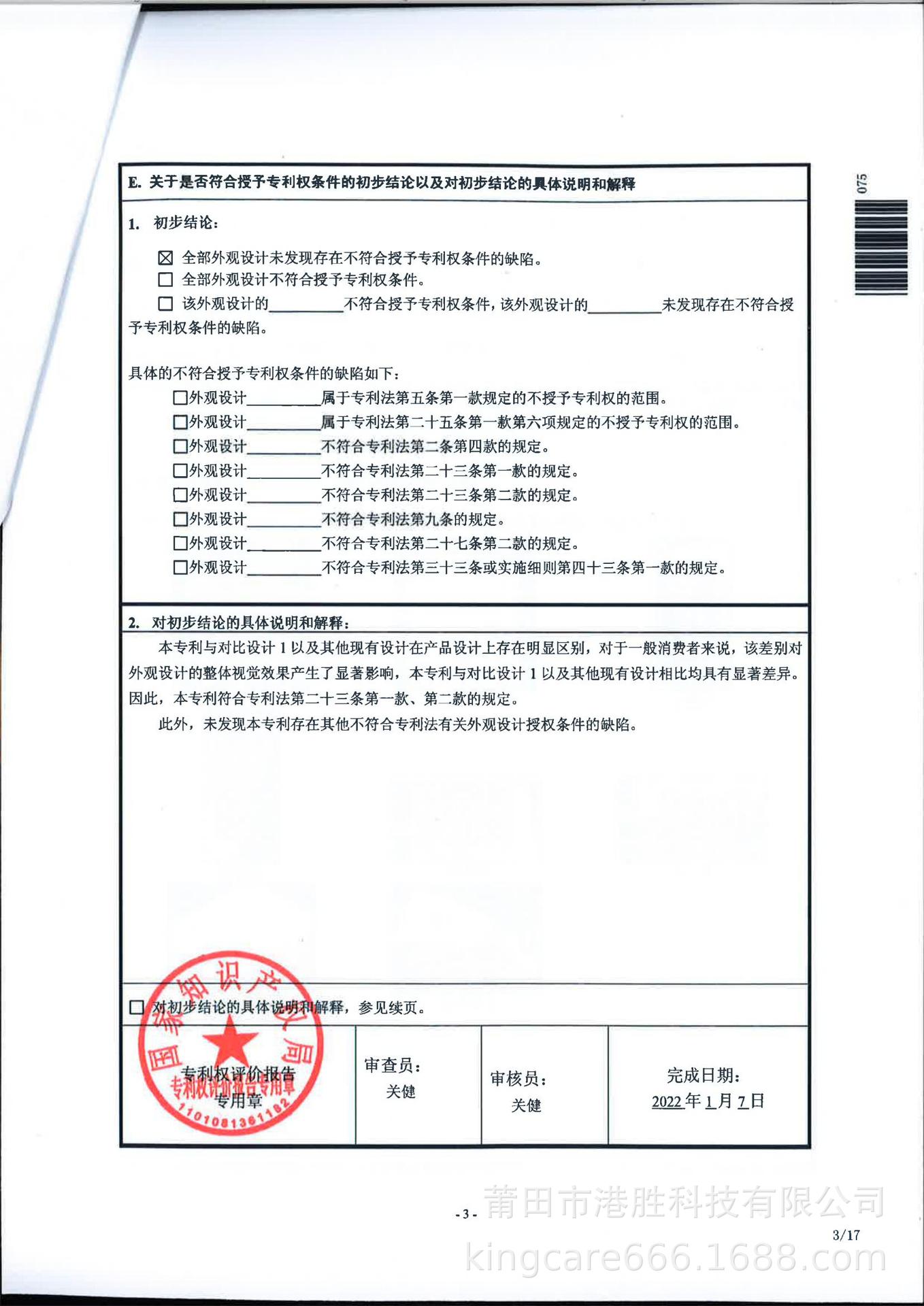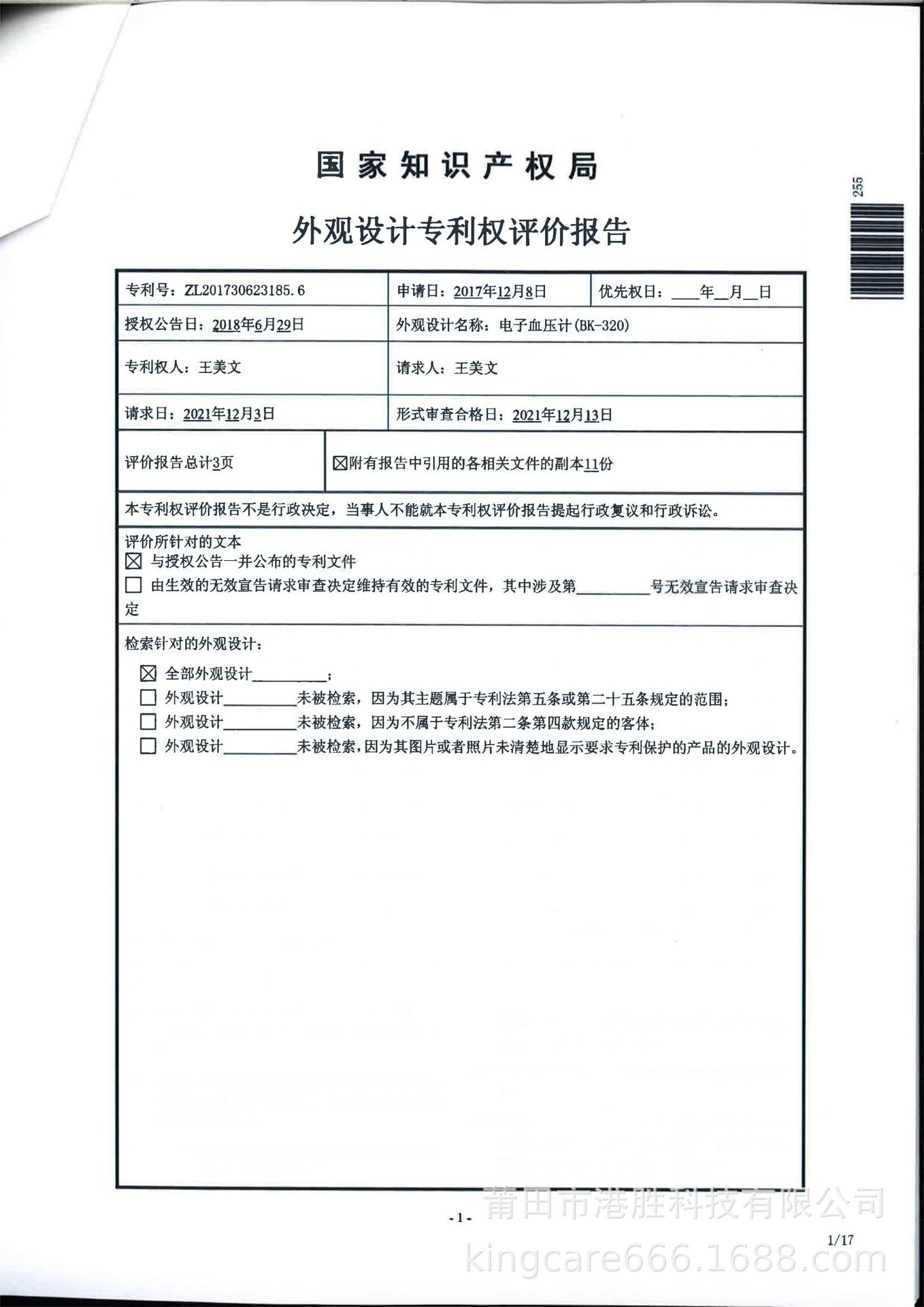 1. El informe de evaluación del derecho de patente de diseño es el siguiente: