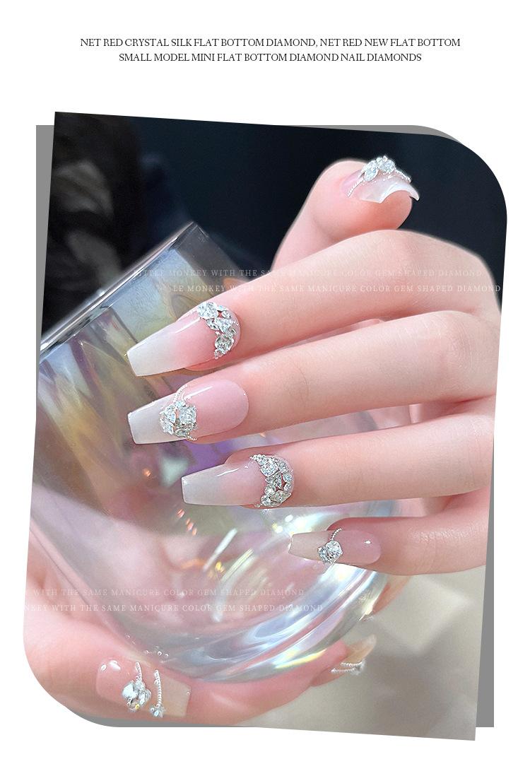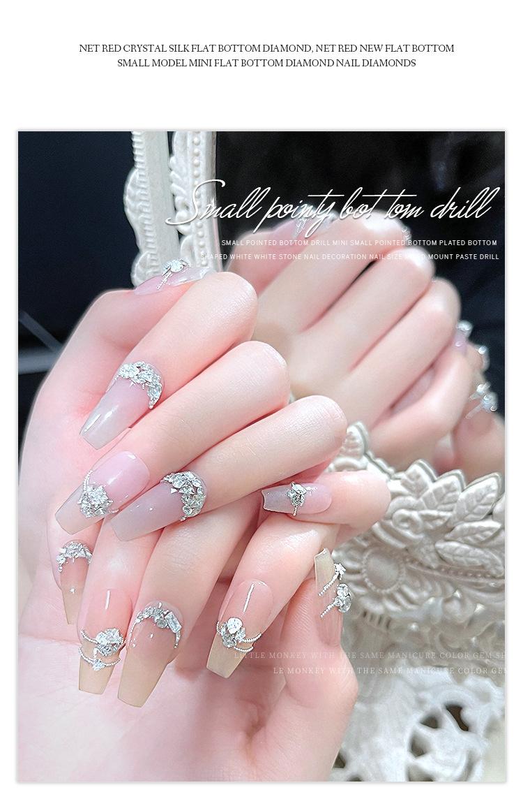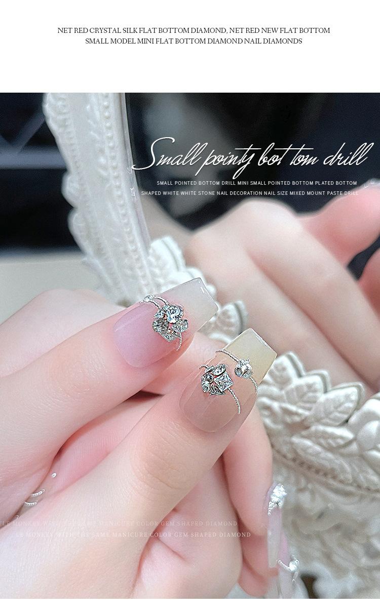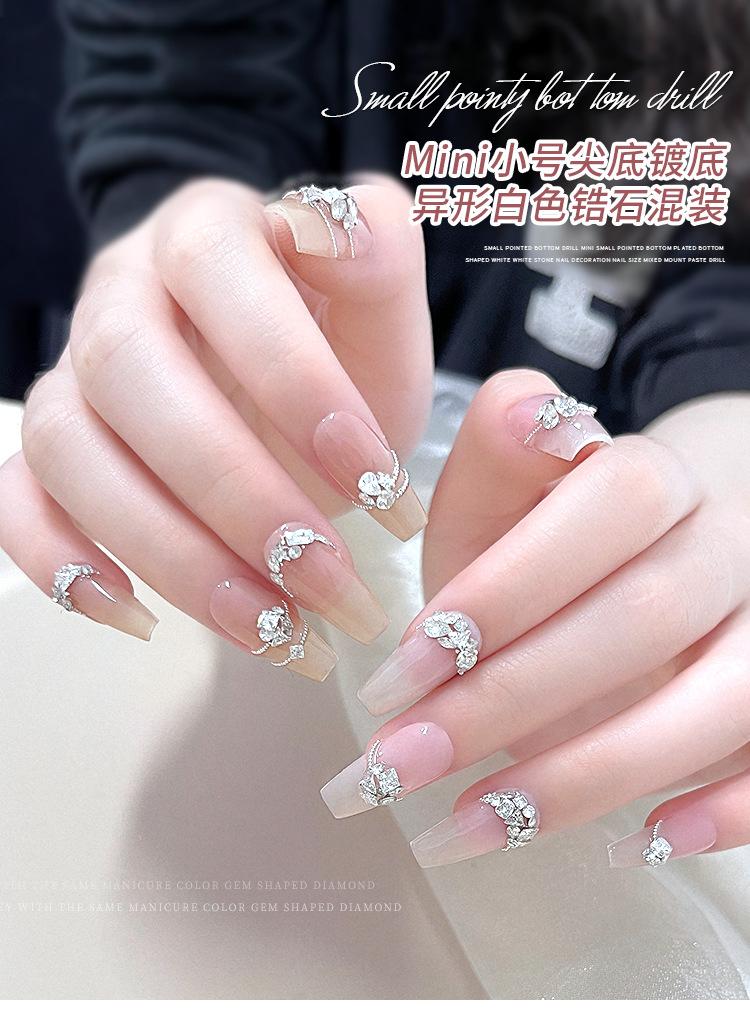 Mini tamaño pequeño, base puntiaguda, base plateada, forma de piedra blanca, decoraciones para uñas, tamaño de uña, pegatinas mixtas, taladro, venta al por mayor