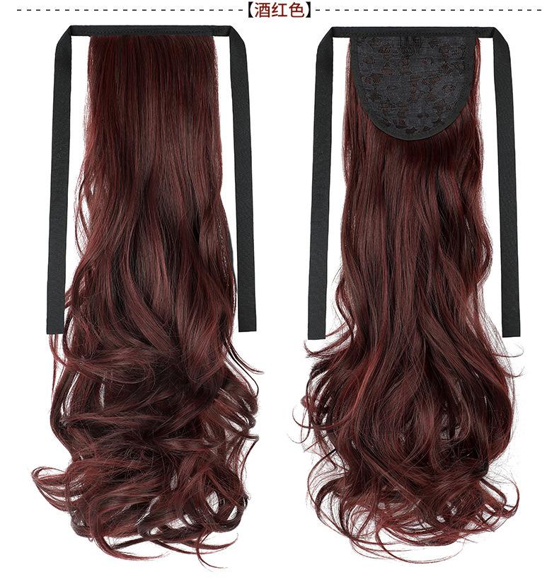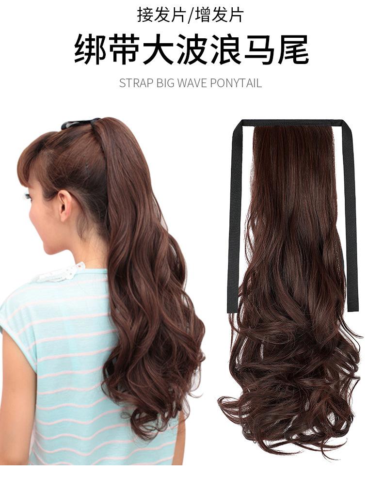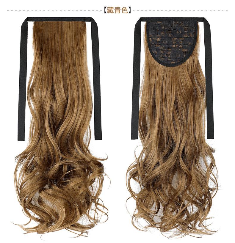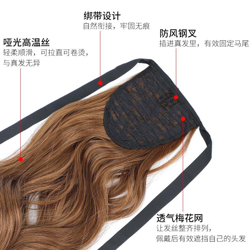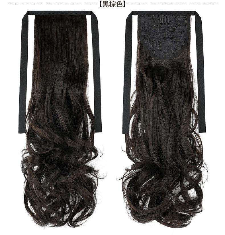 Peluca femenina cabello largo rizado cola de caballo fibra química realista correa cola de caballo atada paquete de cola de caballo fabricantes punto una generación de cabello