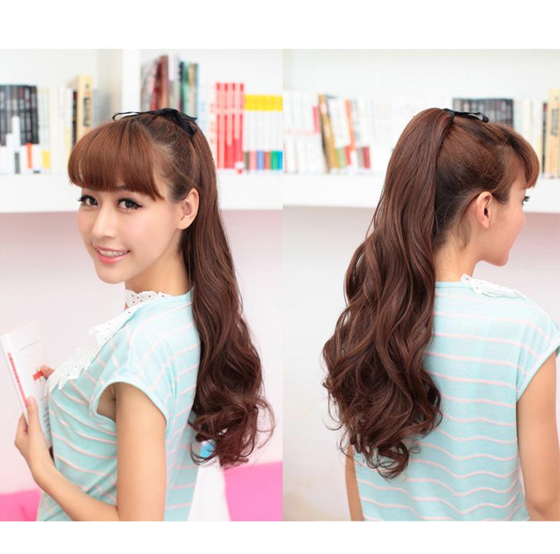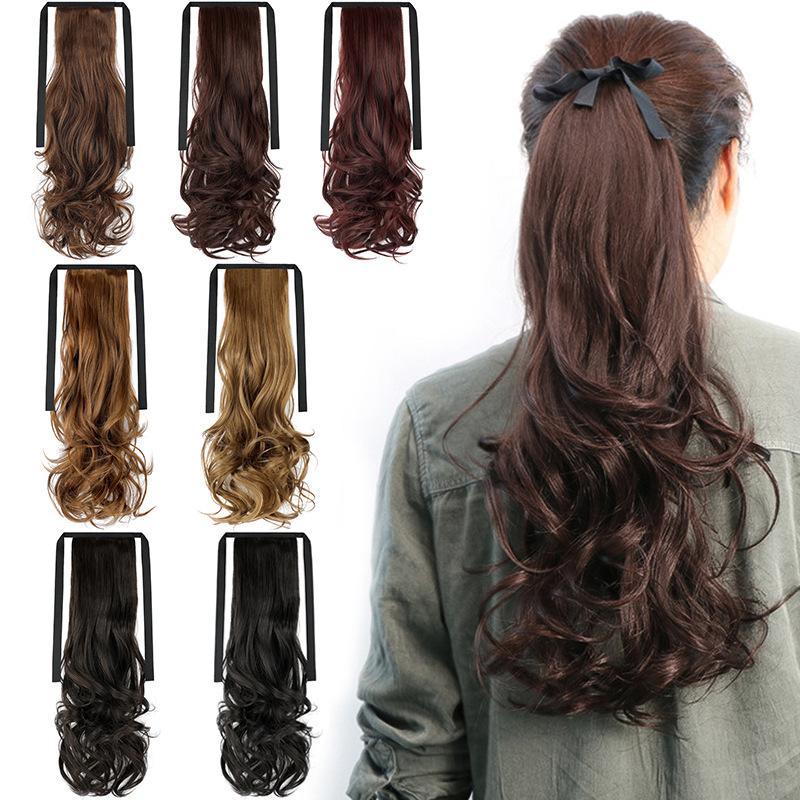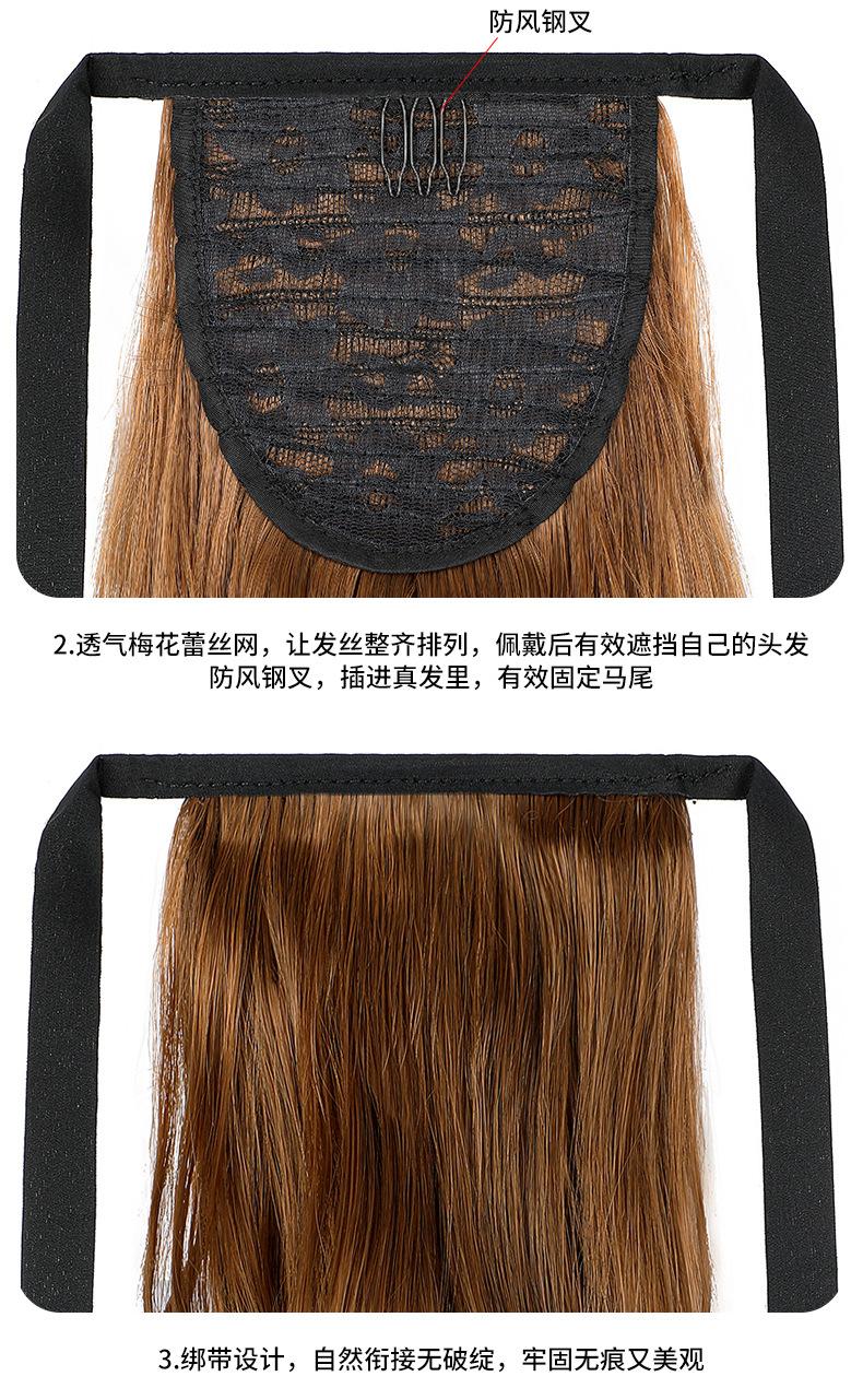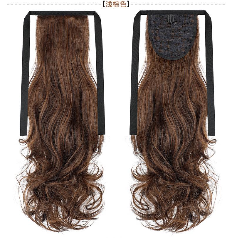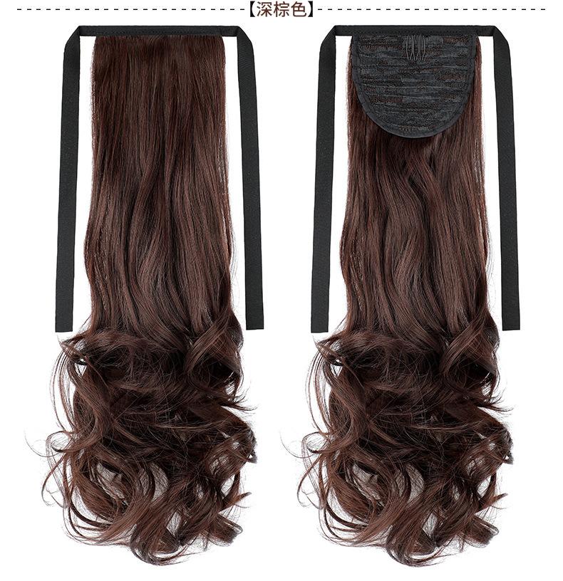 Peluca femenina cabello largo rizado cola de caballo fibra química realista correa cola de caballo atada paquete de cola de caballo fabricantes punto una generación de cabello