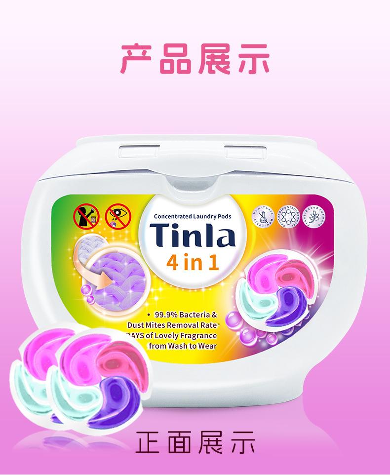 Hong Kong Tinla Tianlei cuatro en uno perlas de lavandería 12g eliminación concentrada de manchas, eliminación de olor, eliminación de bacterias y eliminación de ácaros venta al por mayor de fábrica