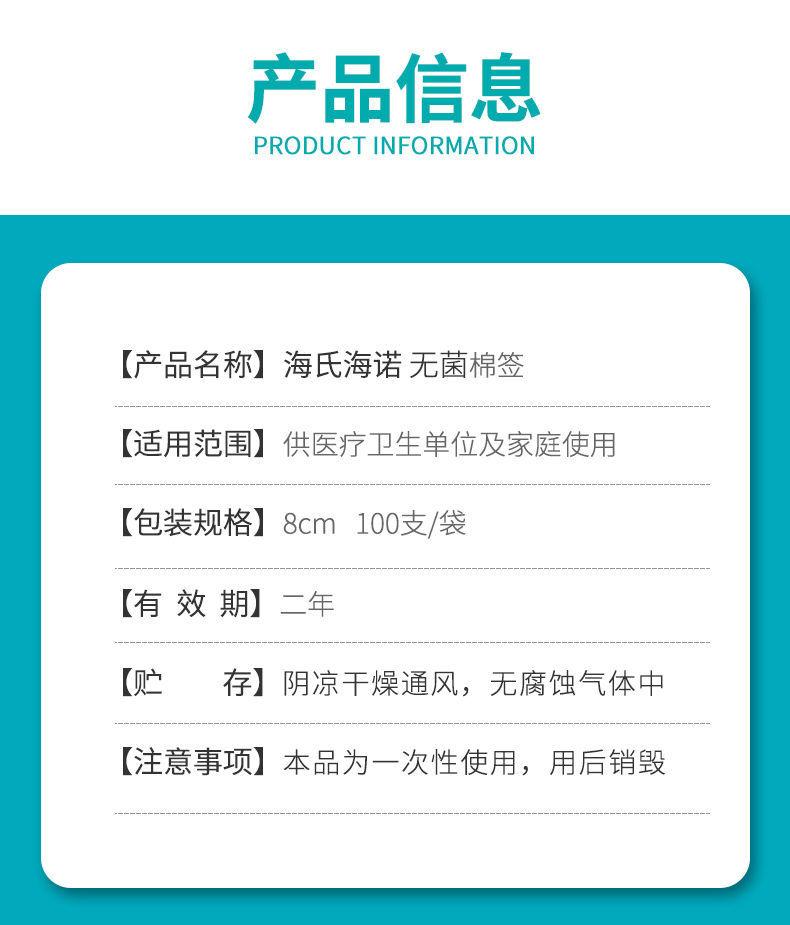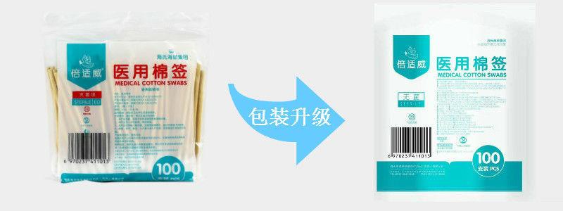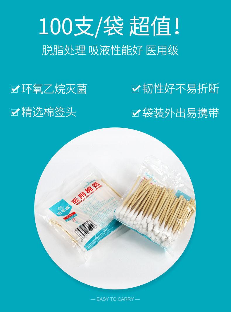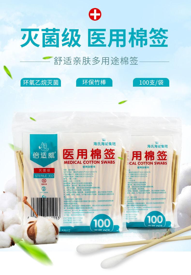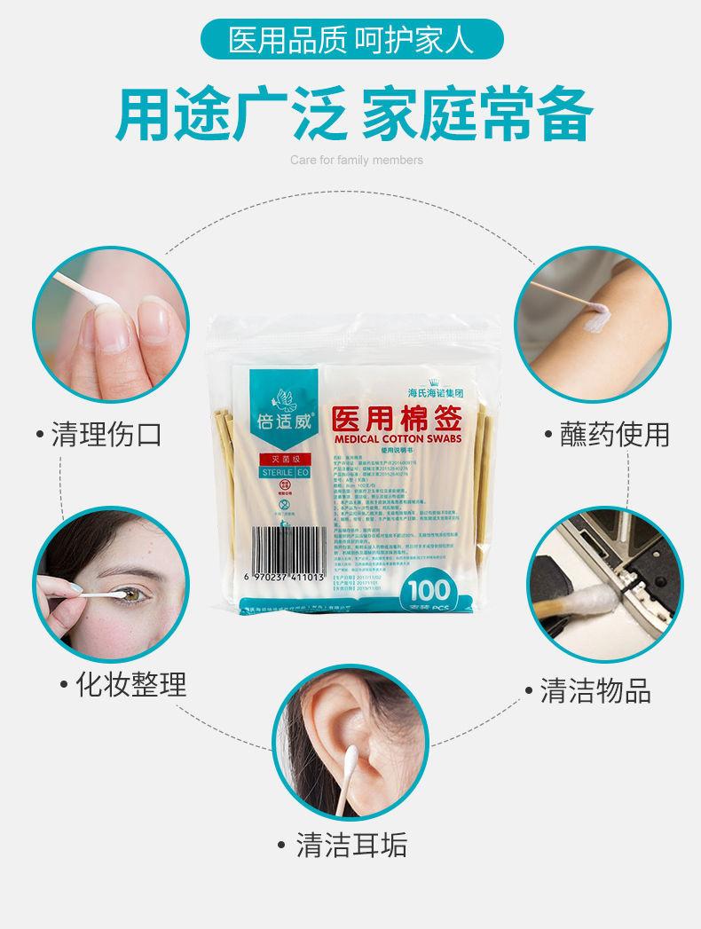 Hisopo de algodón médico Haishi Hainuo, hisopo de algodón desechable, estéril, para limpieza de heridas, desinfección, maquillaje de un solo cabezal, 100 unidades