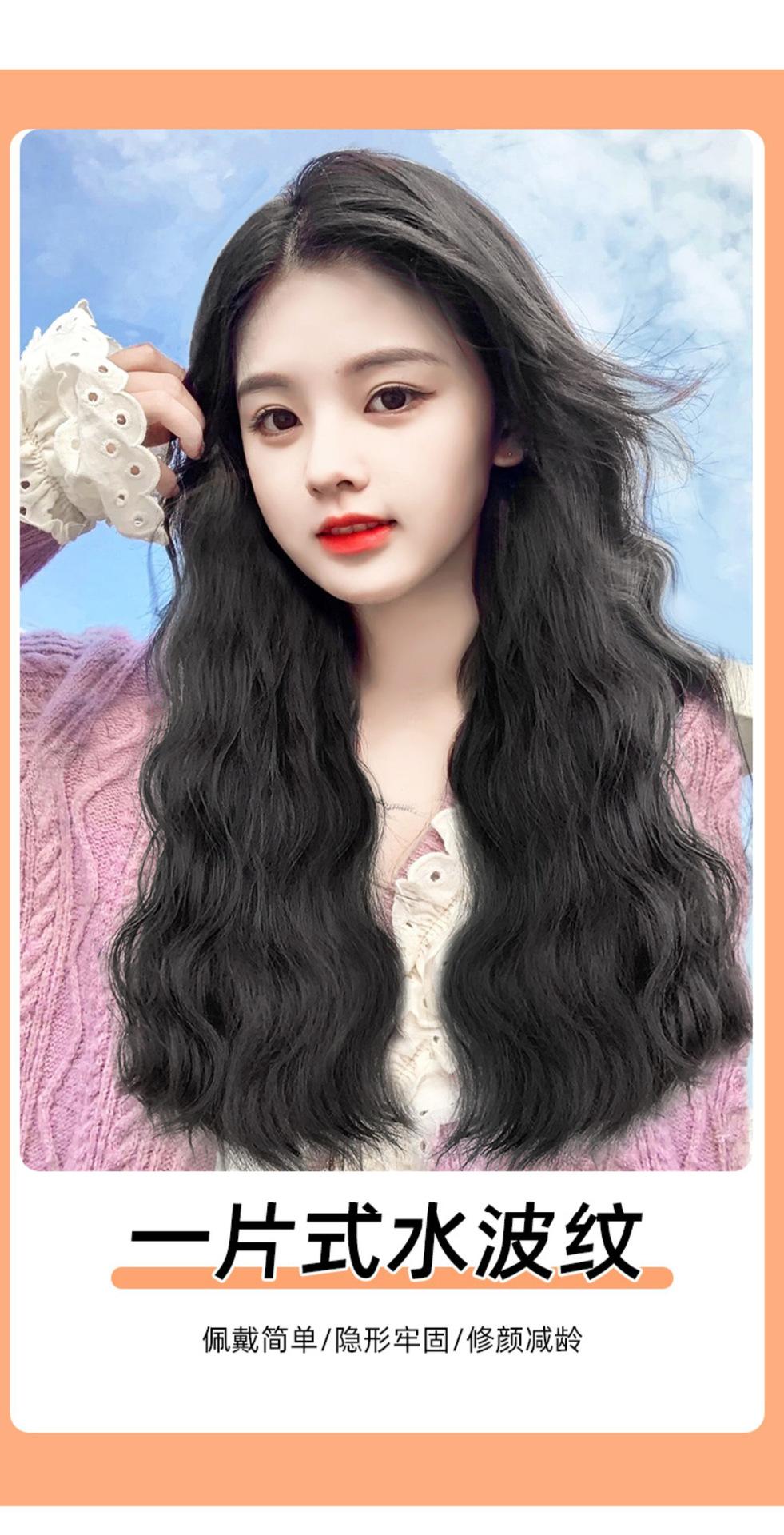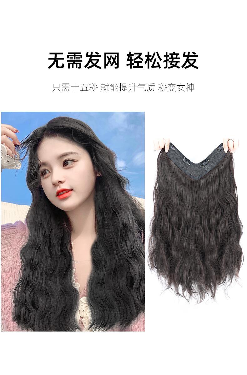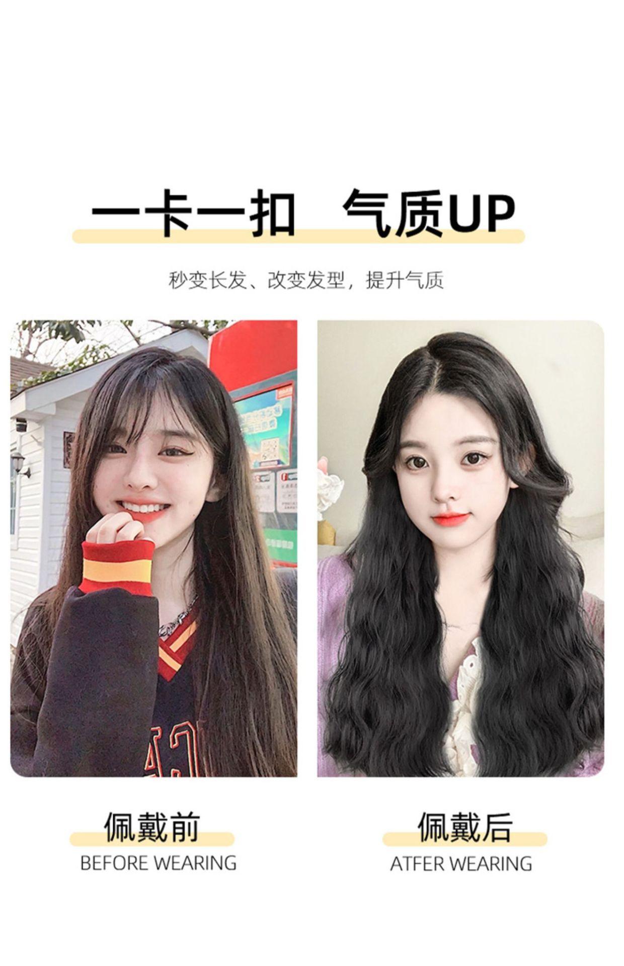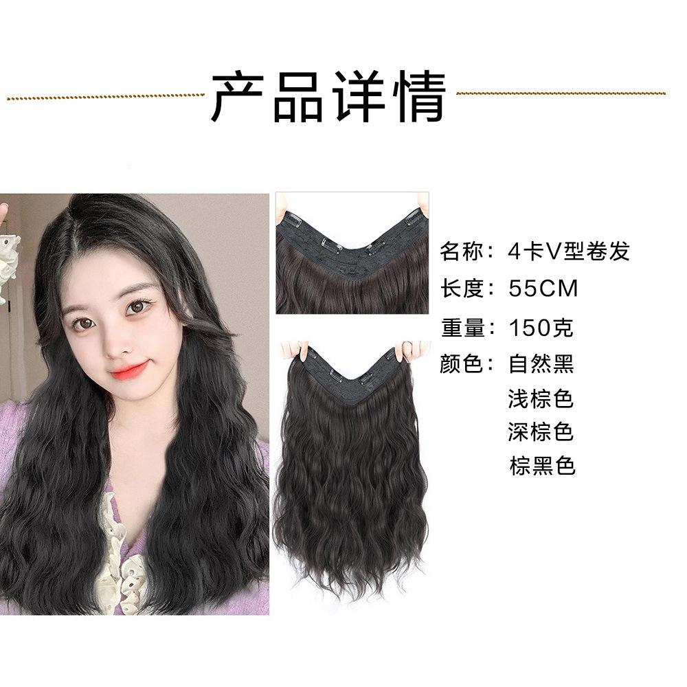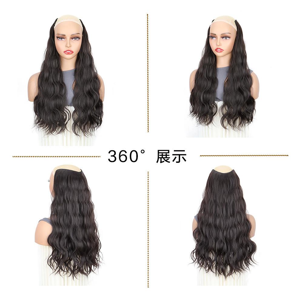 Peluca para Mujer de Una Pieza en Forma de U Invisible Sin Marcas Cabello Artificial Ondulado Rizado Largo Cabello Esponjoso Extensión de Cabello Pieza Extensora de Cabello
