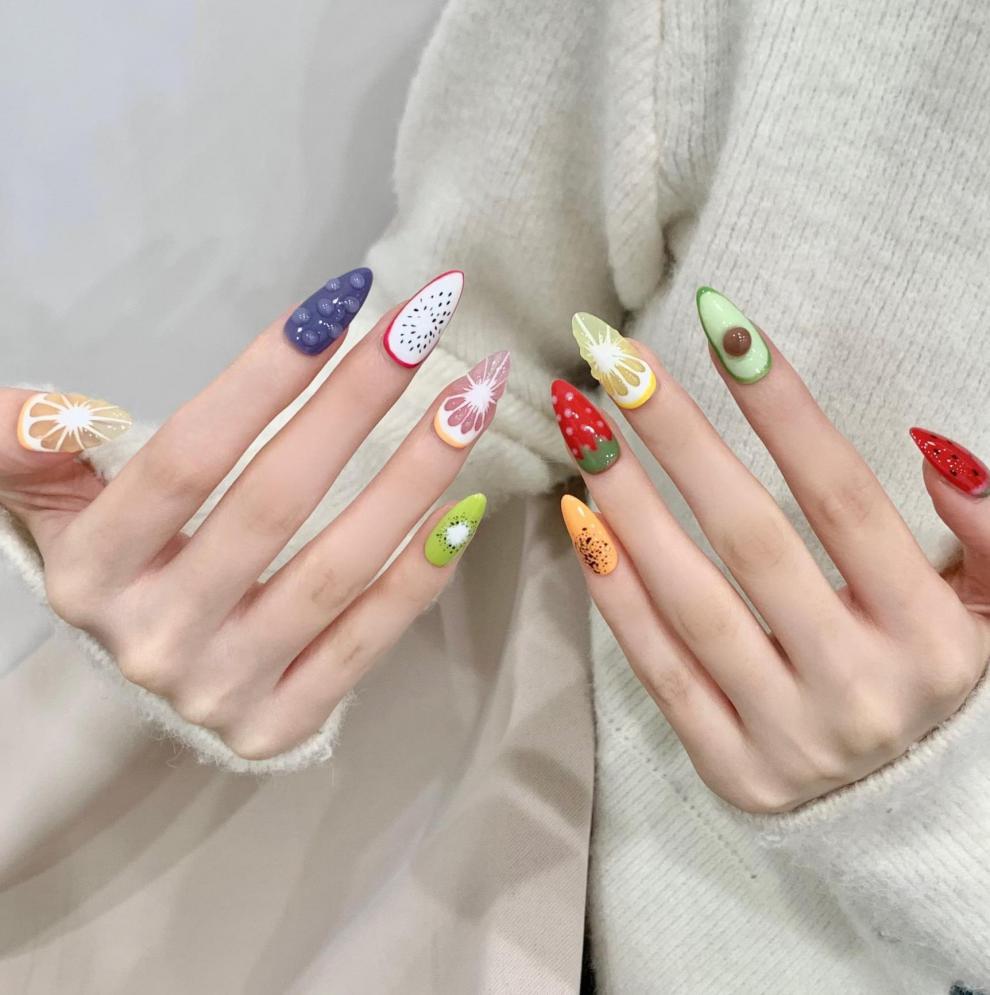 Armadura pura usada a mano, verano fresco, pintado a mano, tridimensional, fruta de dragón, limón, uña, uña, acabado, parche de uña postiza