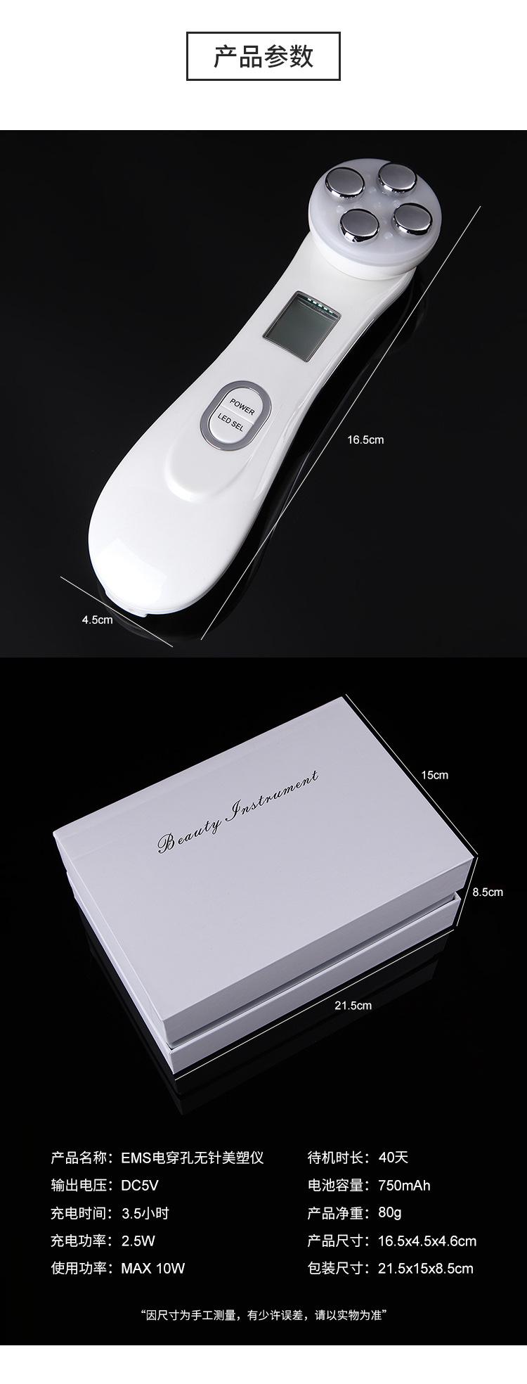Masajeador facial de plástico sin aguja con electroporación EMS Dangmei, instrumento de belleza con luz de color, instrumento para el cuidado de salones de belleza.