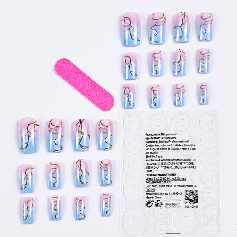 | |  | | Pegatinas para uñas con degradado de mármol azul y rosa de estilo europeo y americano, para usar, presionar sobre las uñas, producto terminado, venta al por mayor ¥3.80 |  |