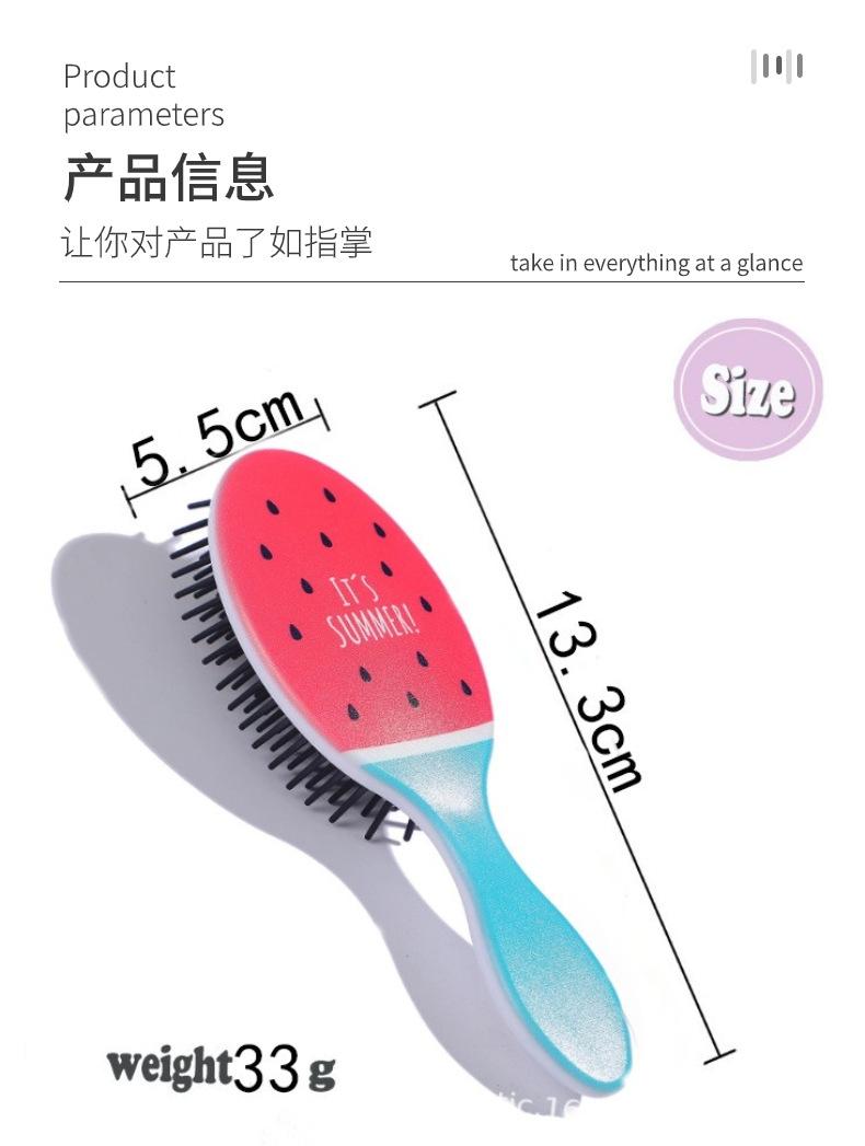 Peine pequeño con bolsa de aire para masaje capilar portátil con estampado de frutas y dibujos animados para niños