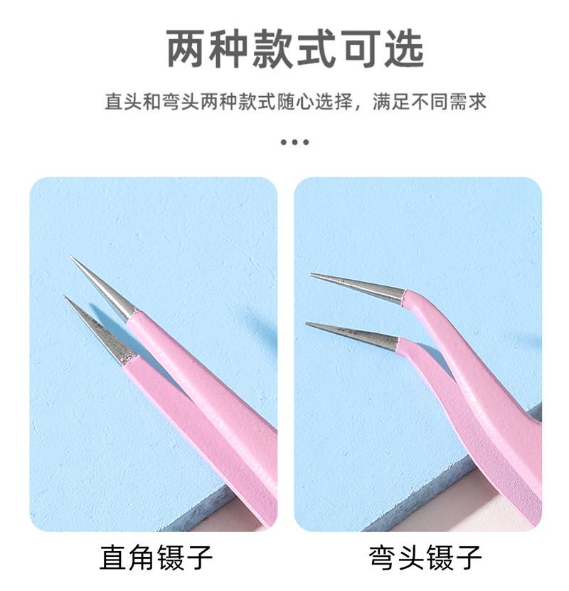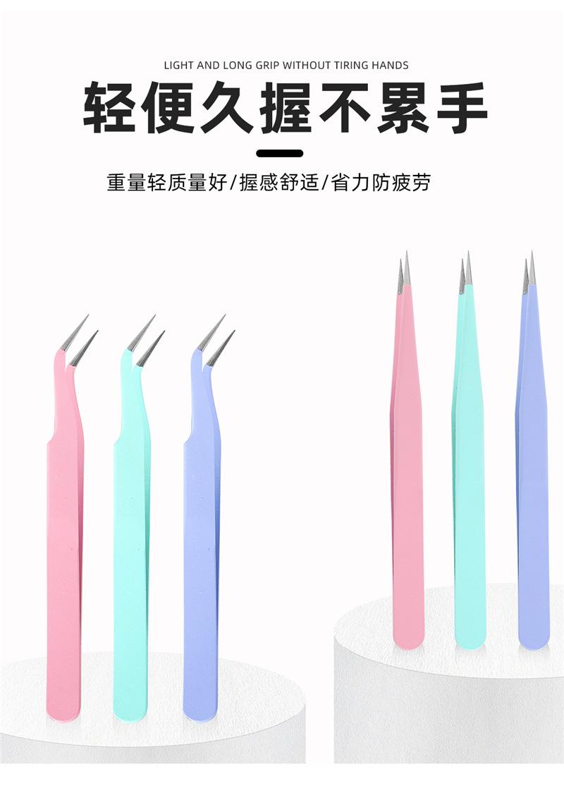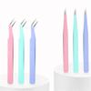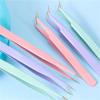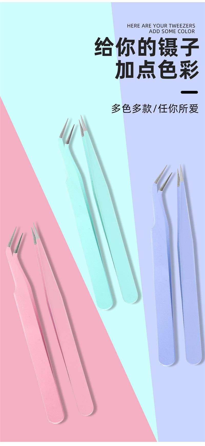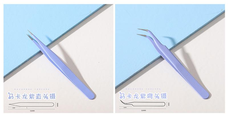 Pink straight tweezers, Pink elbow tweezers, Purple straight tweezers, Purple elbow tweezers, Blue straight tw...
