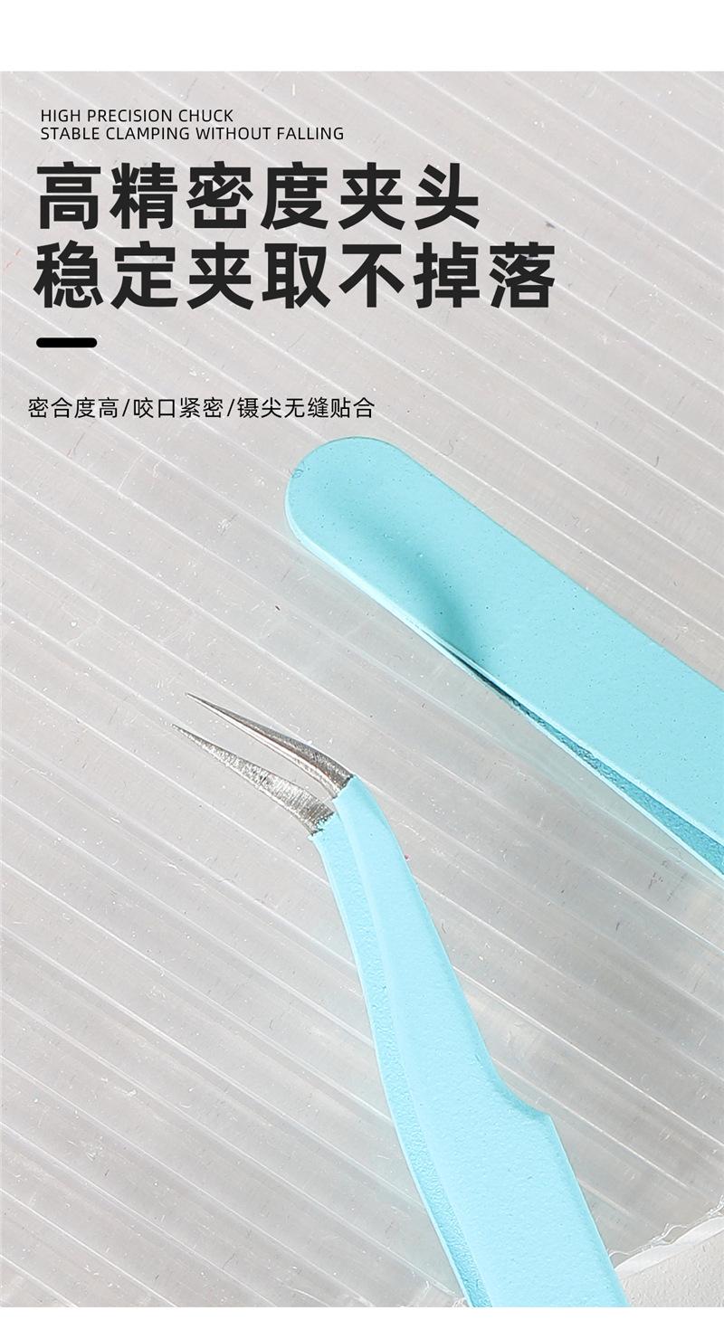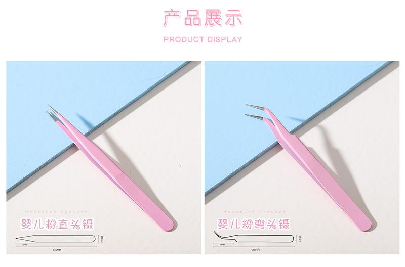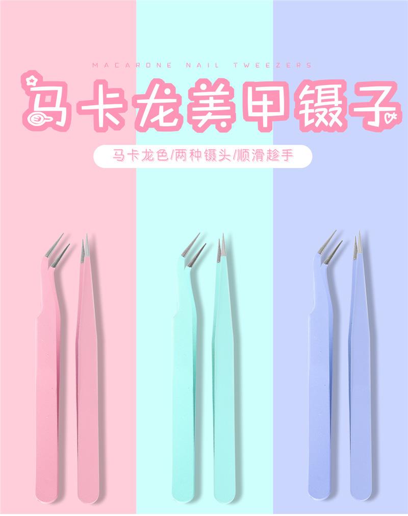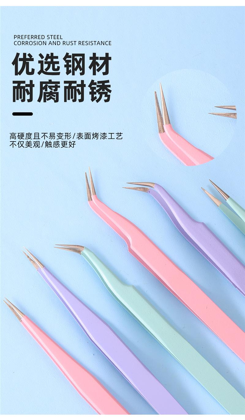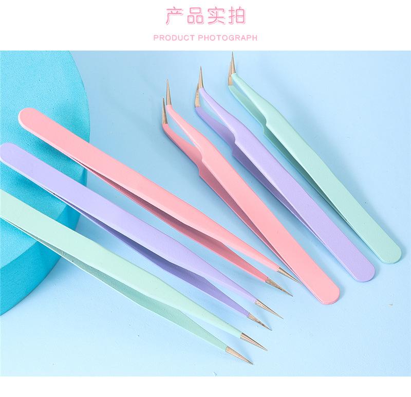 Pinzas rectas para uñas, color macarrón, antiestáticas, de precisión, para cuentas de mano, con clip para taladro.