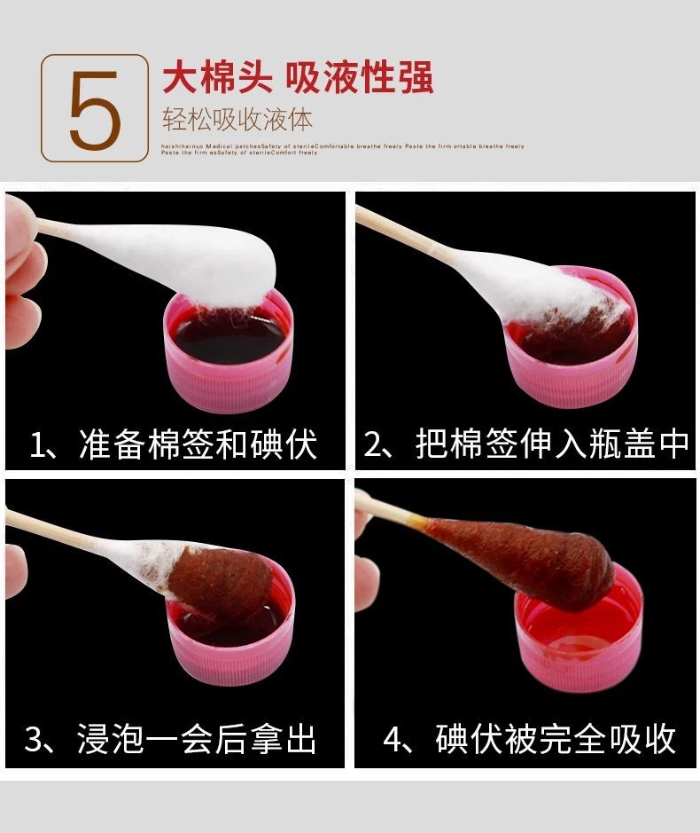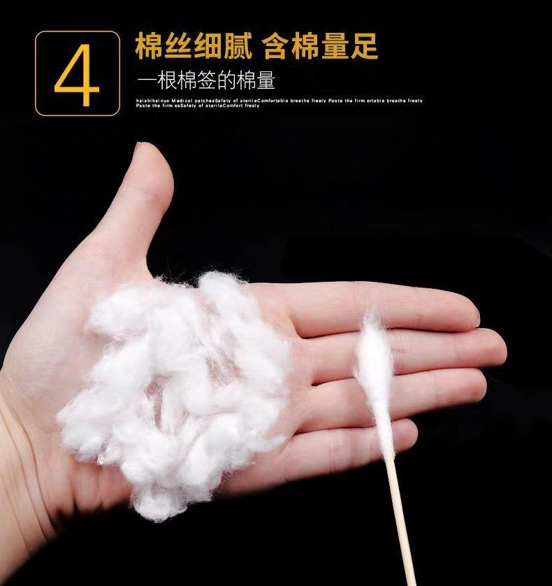 Medical cotton swab is made of medical absorbent cotton as raw material and wrapped on bamboo stick.