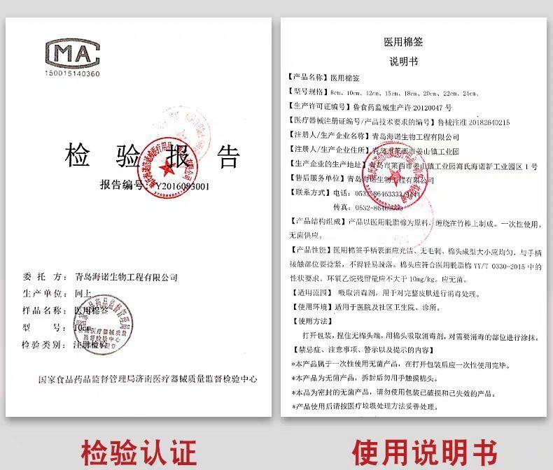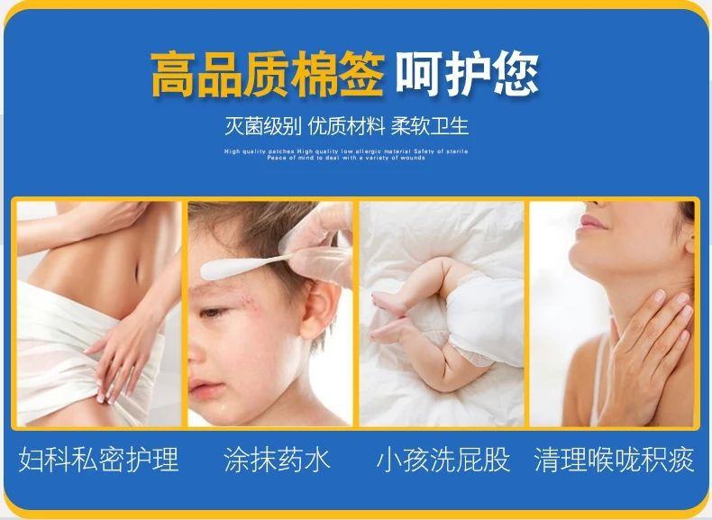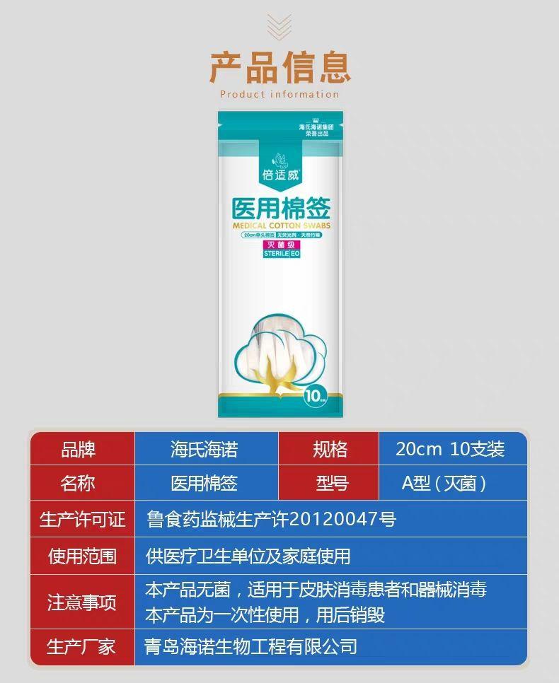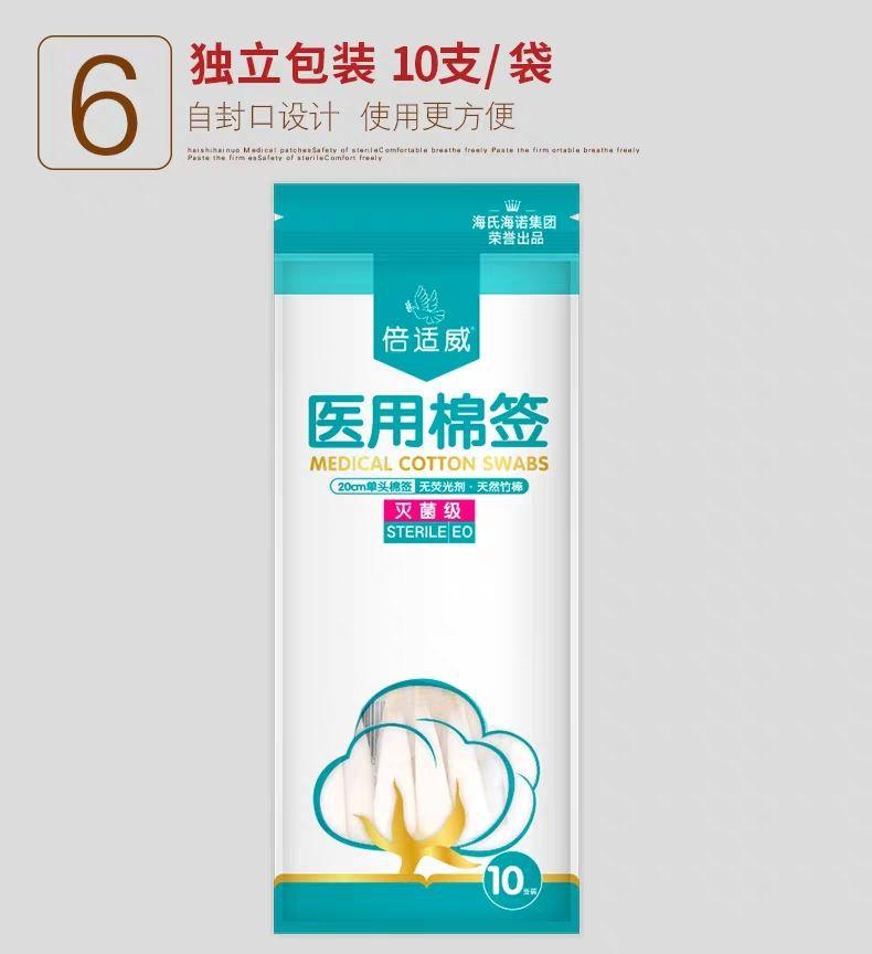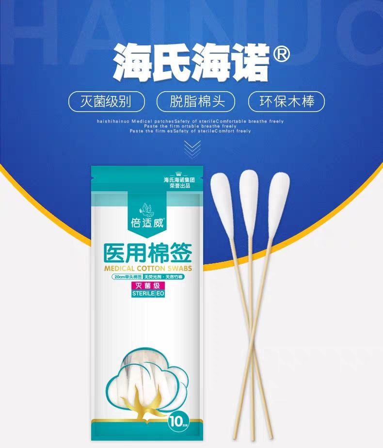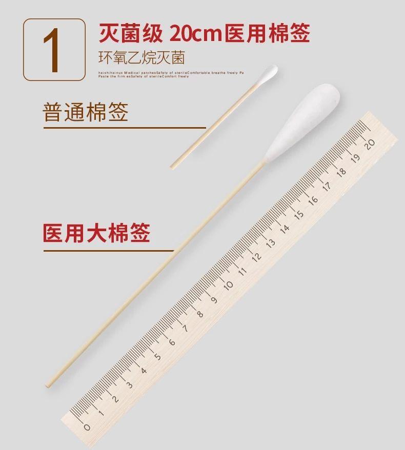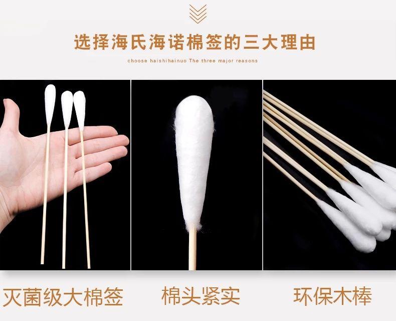 Hisopo de algodón de cabeza grande Haishi Hainuo de 20 cm, desechable, estéril, para uso ginecológico materno, para desinfección de heridas, hisopo de algodón de una sola cabeza largo.