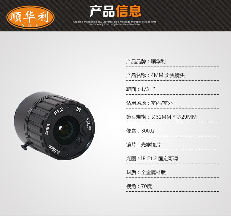 Lente de visión para cámara de vigilancia de 4 mm de apertura fija de 3 millones de píxeles de alta definición, lente industrial CCD de 2,5 pulgadas