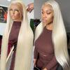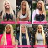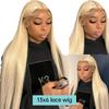 Peluca de encaje frontal transfronteriza europea y americana para mujer, cabello lacio medio largo dorado claro, esponjoso, moda natural, conjunto completo en stock
