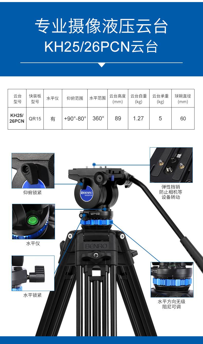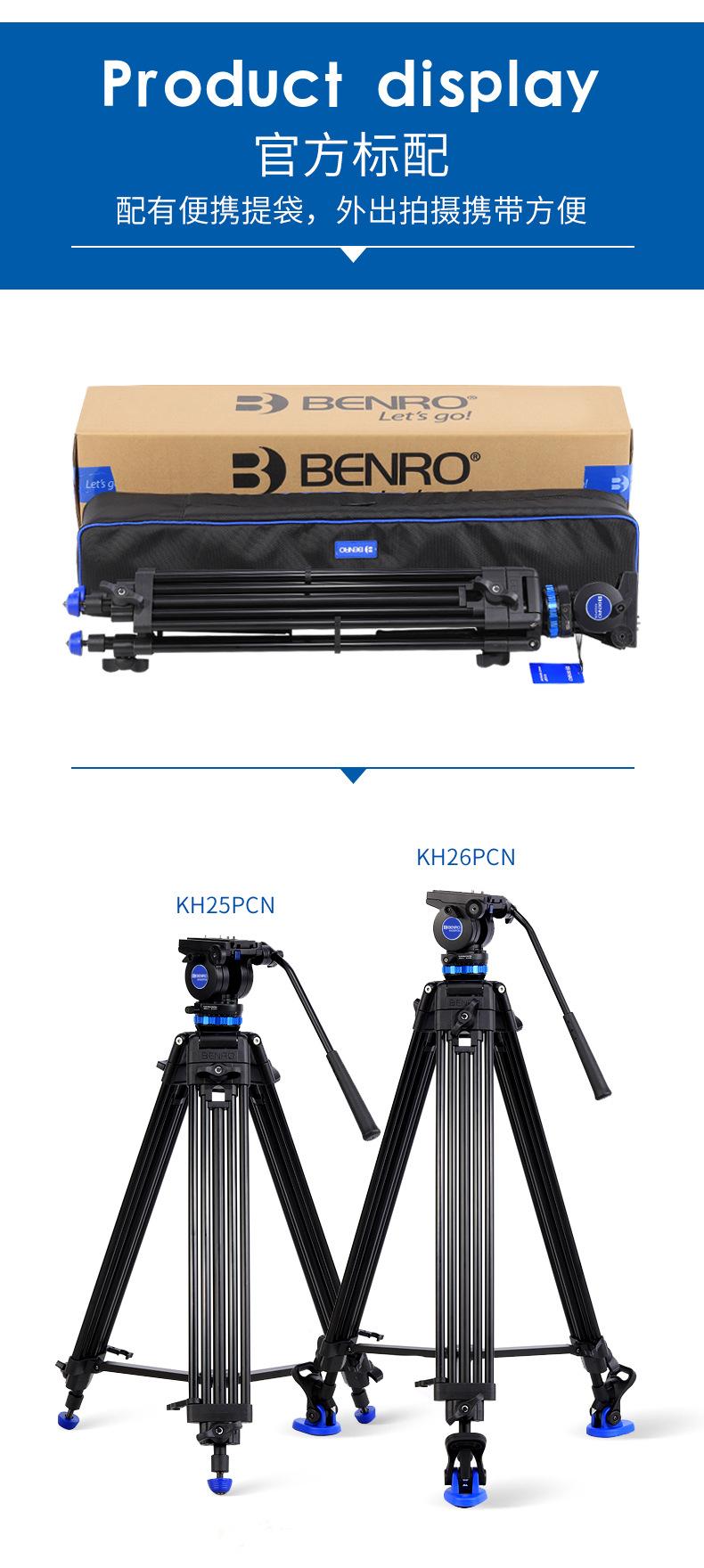 Benro Kh25Pccn Profesional Portátil Soporte para Cámara Fotográfica Réflex SLR Cabezal Hidráulico Panorámico/Inclinable Trípode de Piso